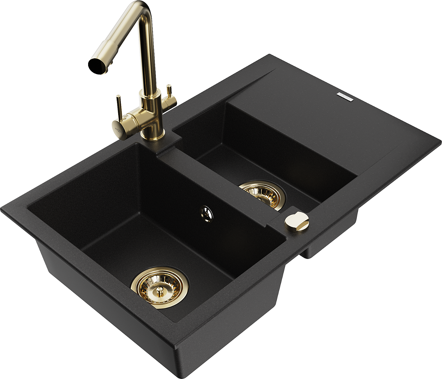 Mexen Gaspar granitový dřez 1,5-komorový s odkapávačem a kuchyňskou baterií Duero, černý - 6507-77-671600-50