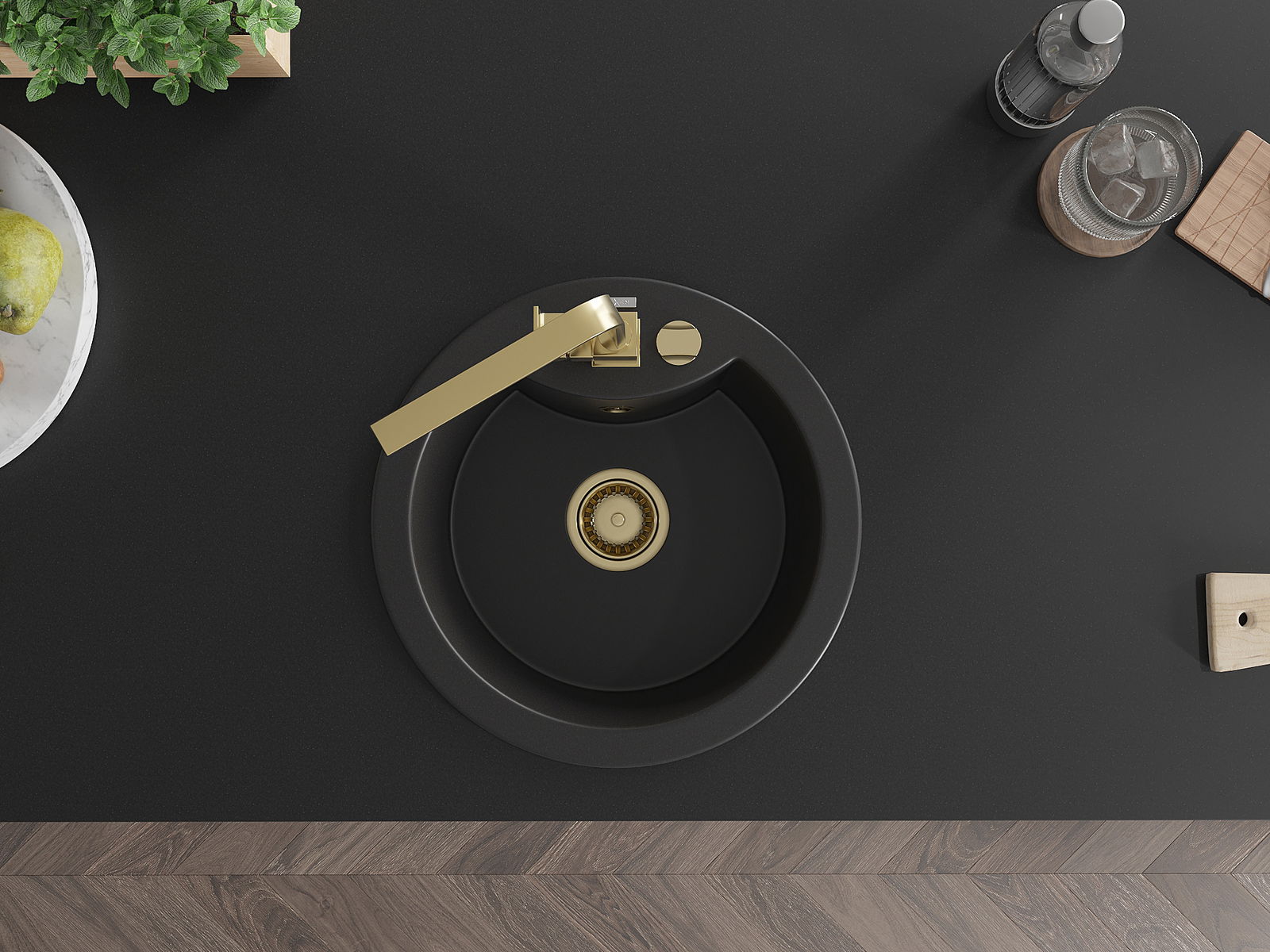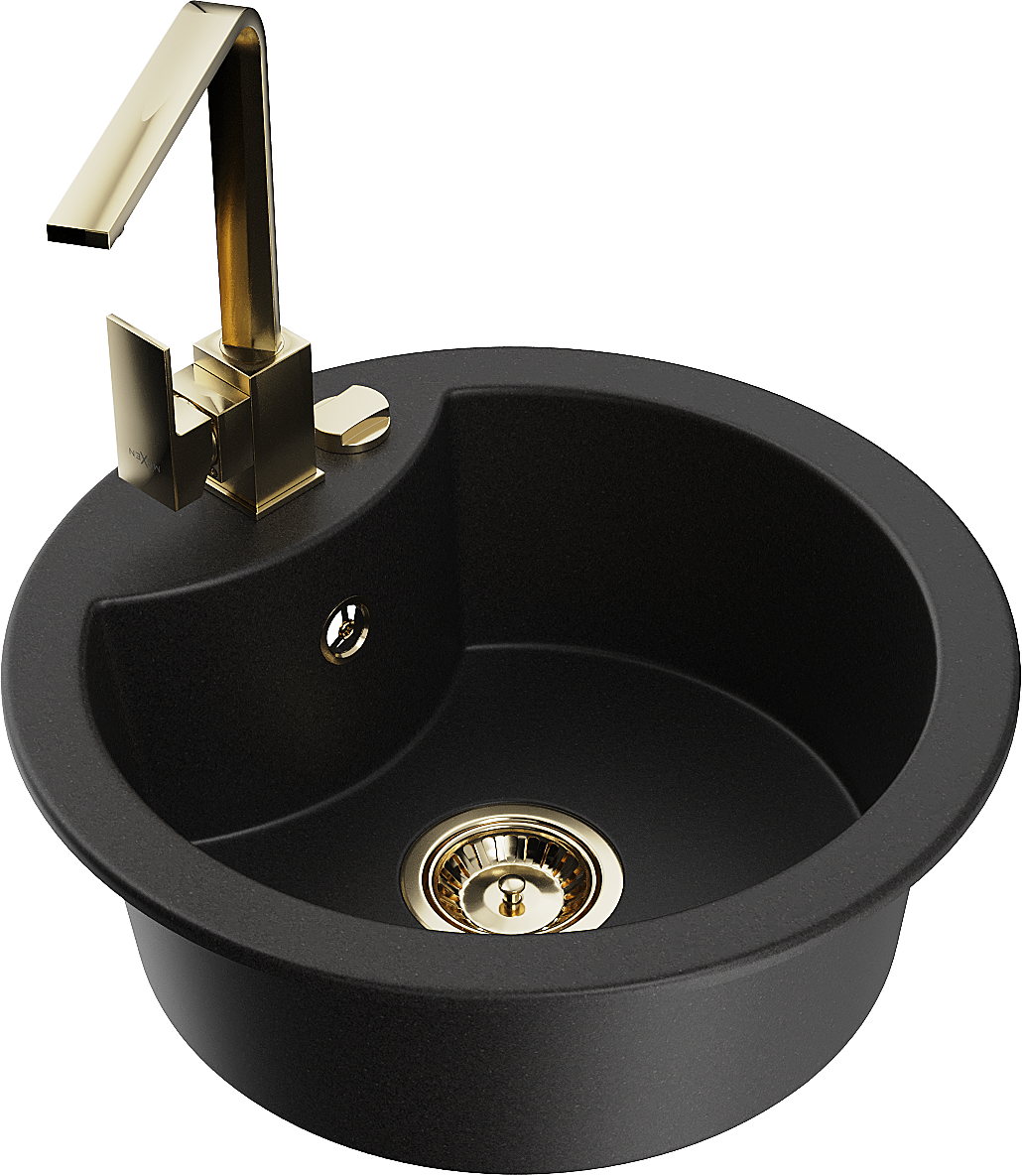 Mexen Diego granitový dřez s 1 komorou a kuchyňskou baterií Rita, černý - 6512-77-670300-50