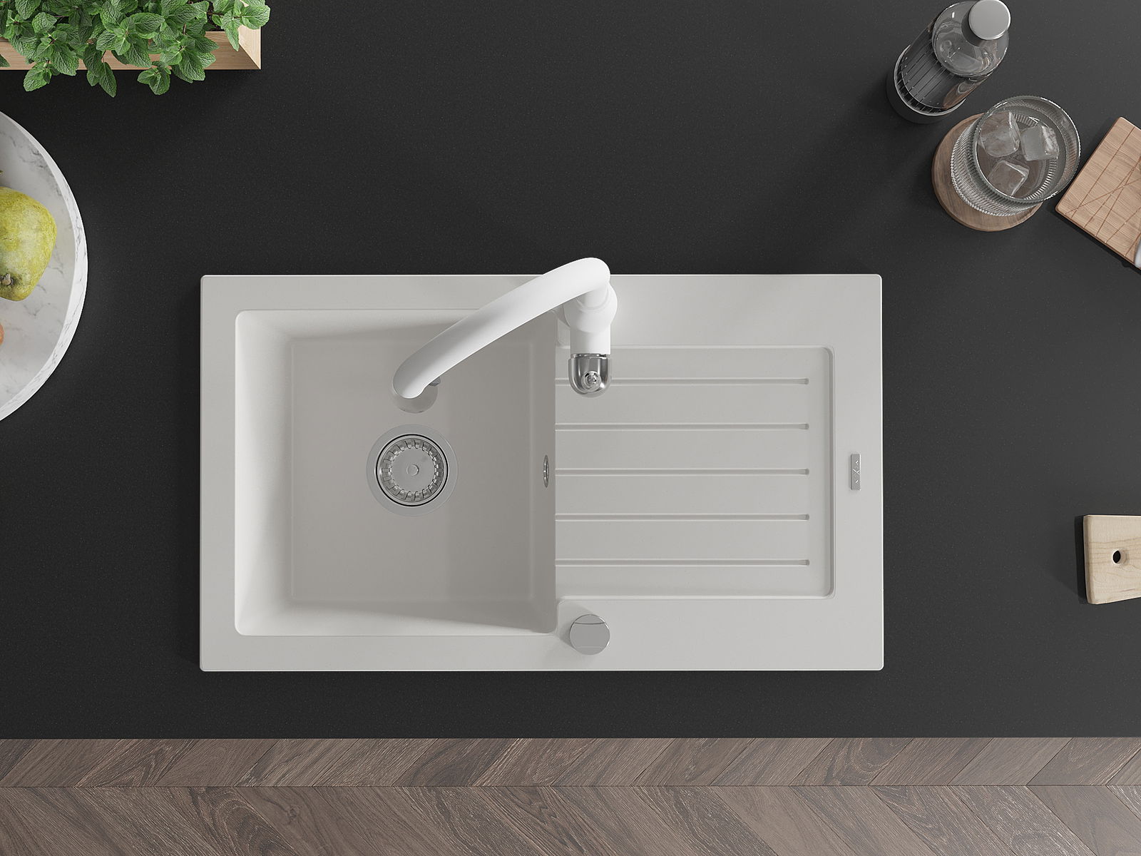 Povrch dřezu je velmi dobře vytvrzený, vyznačuje se výjimečnou odolností proti mechanickému poškození a poškrábání. Trvanlivý materiál umožňuje užívat si dobrý vzhled dřezu po mnoho let používání.