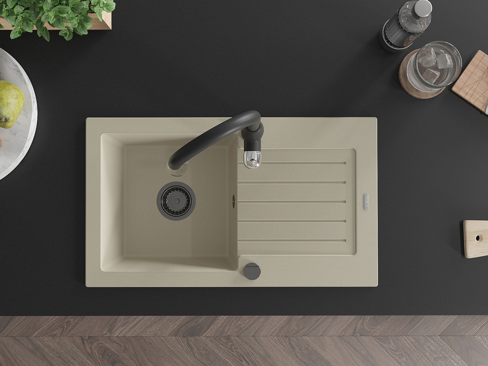 Dřez byl vyroben z vysoce kvalitního granitu. Představuje elegantní a především praktický doplněk každé kuchyně, bez ohledu na její styl. Vysoká kvalita a trvanlivost granitu zajišťují dlouholeté používání.