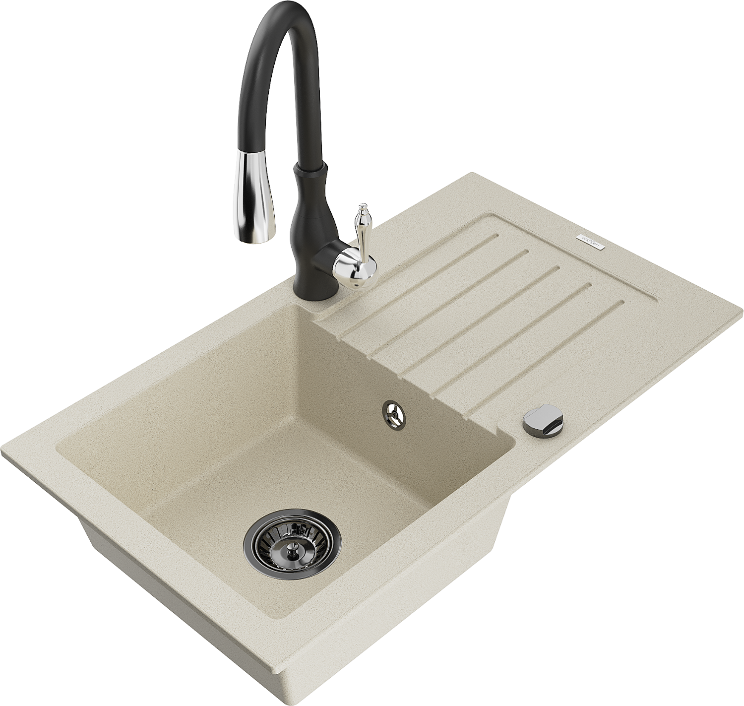 Mexen Pablo jednovanový žulový dřez s odkapávačem a kuchyňskou baterií Savita, béžový - 6510-69-672601-70