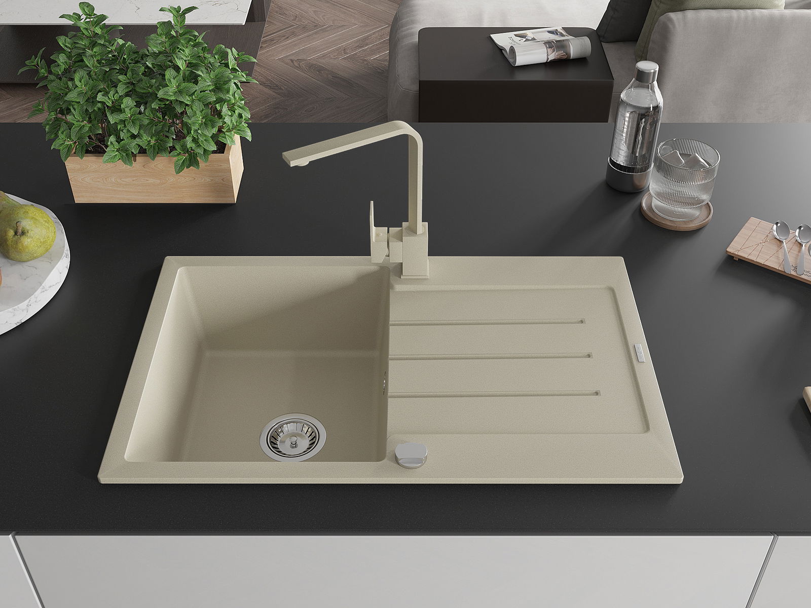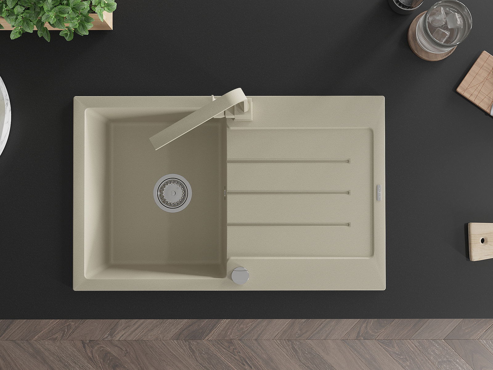 Dřez byl vyroben z vysoce kvalitního granitu. Představuje elegantní a především praktický doplněk každé kuchyně, bez ohledu na její styl. Vysoká kvalita a trvanlivost granitu zajišťují dlouholeté používání.