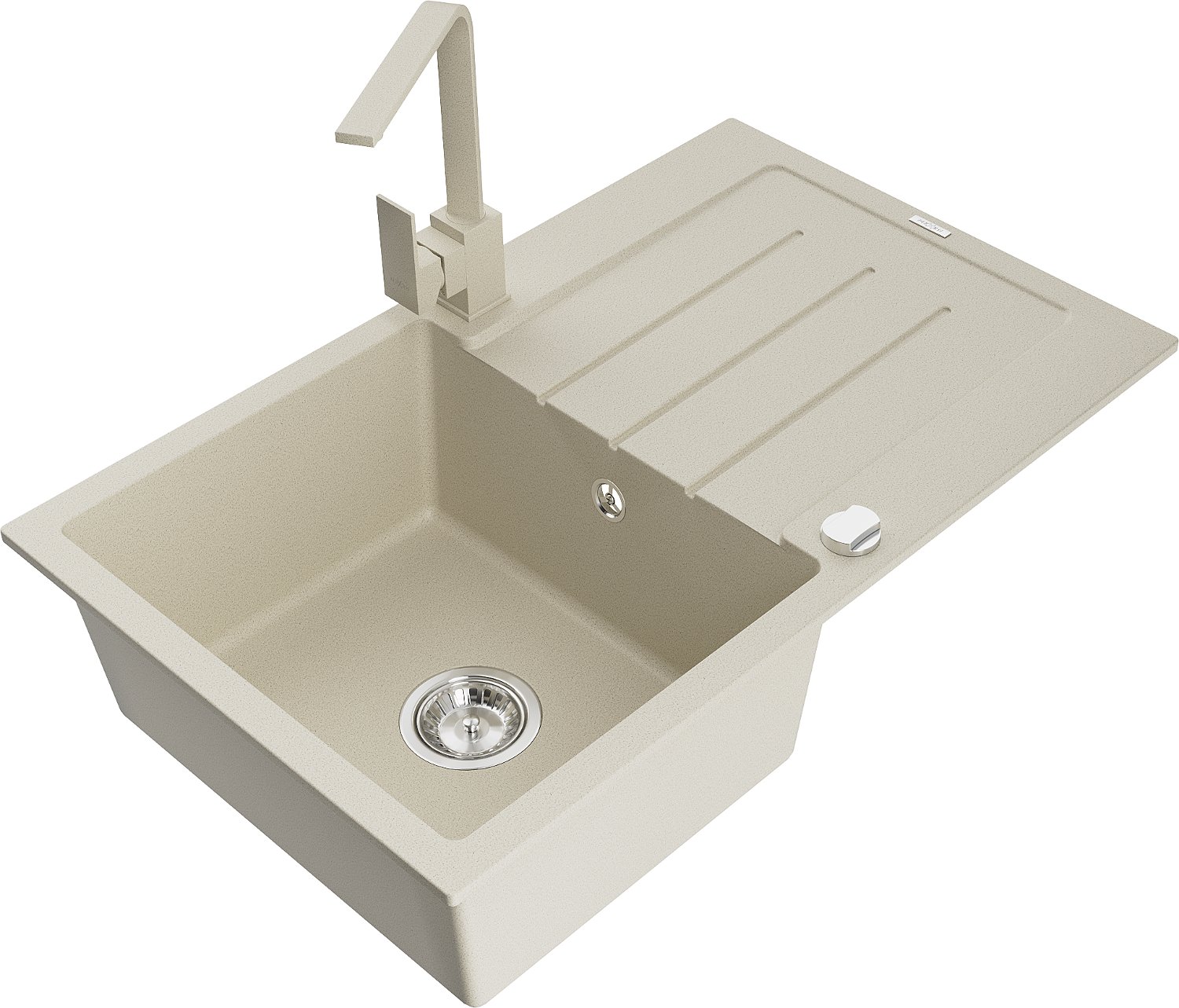 Mexen Bruno granitový dřez s odkapávačem a kuchyňskou baterií Rita, béžový - 6513-69-670300-69