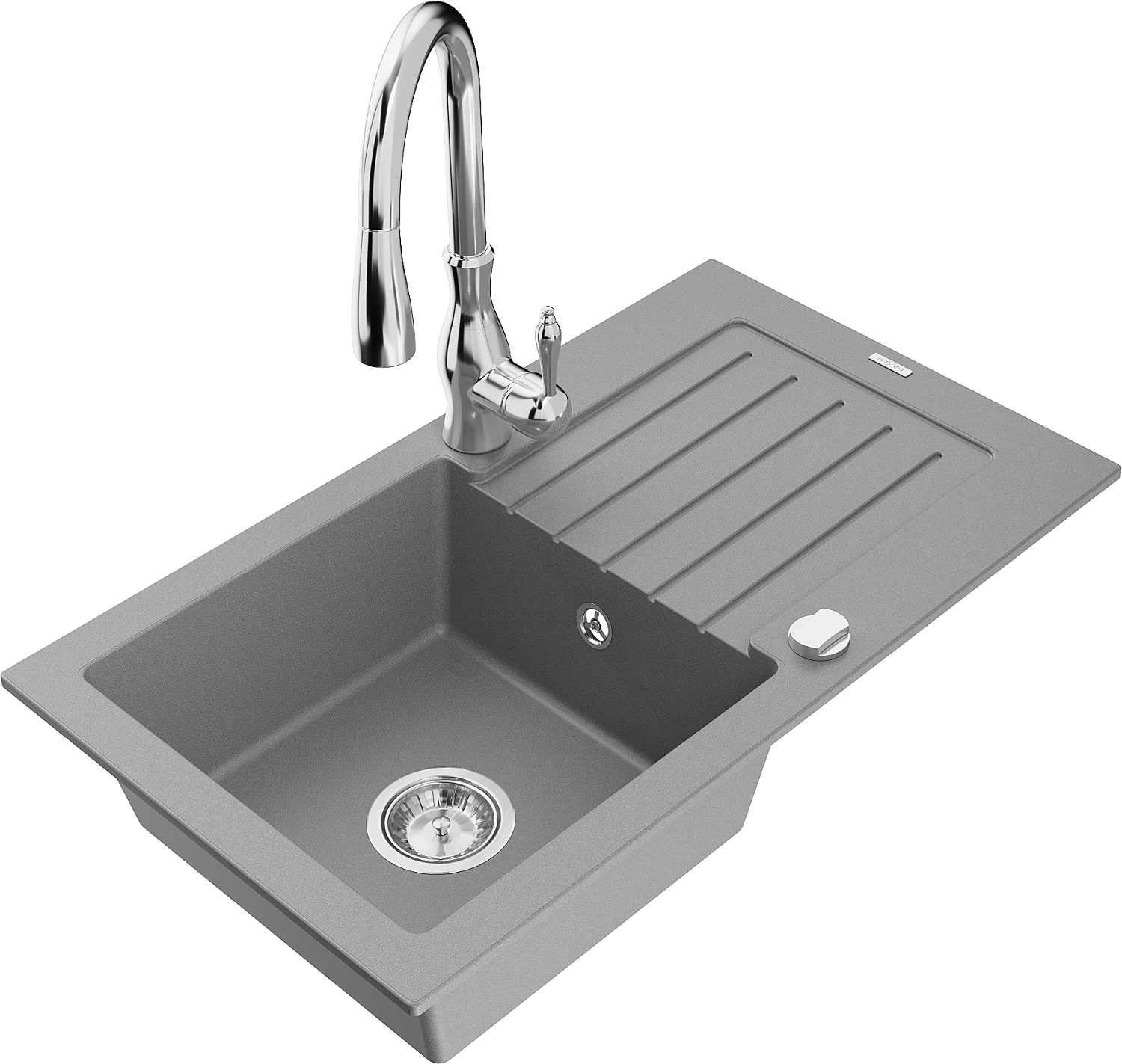 Mexen Pablo granitový dřez 1-komorový s odkapávačem a kuchyňská baterie Savita, šedý - 6510-71-672601-00