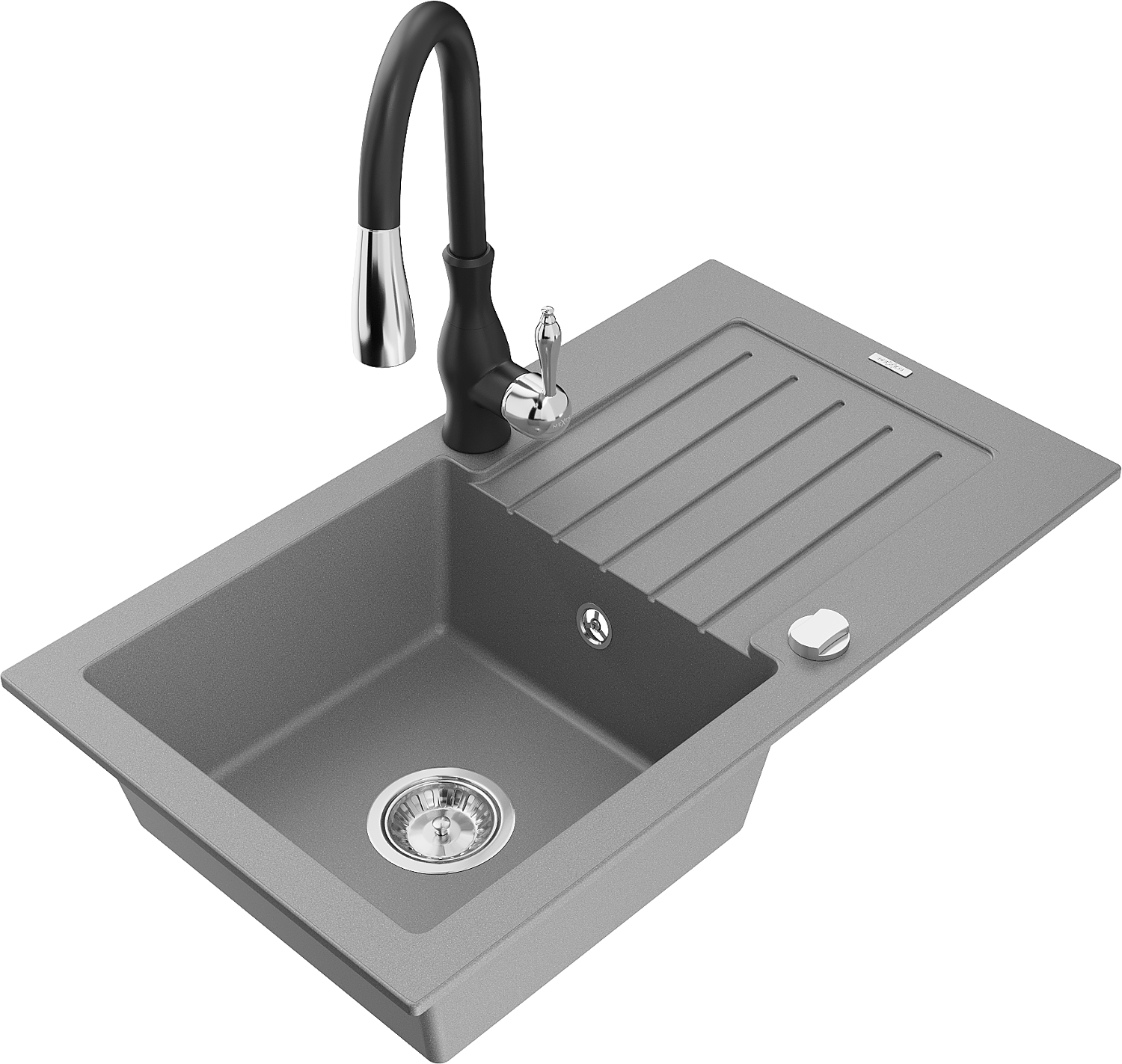 Mexen Pablo kuchyňský dřez s odkapávačem a kuchyňskou baterií Savita, šedý - 6510-71-672601-70