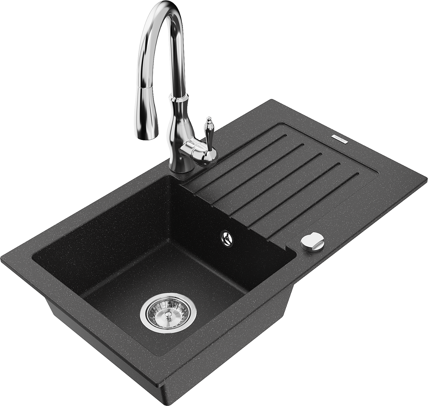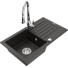 Mexen Pablo granitový dřez 1-komorový s odkapávačem a kuchyňskou baterií Savita, černý/stříbrný metalik - 6510-73-672601-00