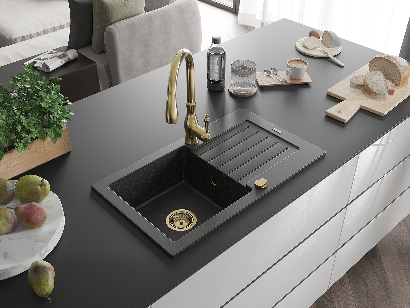 Dřez byl vyroben z vysoce kvalitního granitu. Představuje elegantní a především praktický doplněk každé kuchyně, bez ohledu na její styl. Vysoká kvalita a trvanlivost granitu zajišťují dlouholeté používání.