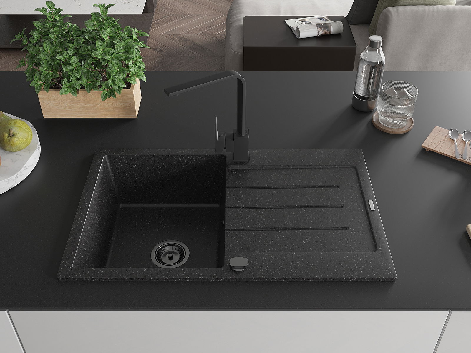 Dřez byl vyroben z vysoce kvalitního granitu. Představuje elegantní a především praktický doplněk každé kuchyně, bez ohledu na její styl. Vysoká kvalita a trvanlivost granitu zajišťují dlouholeté používání.
