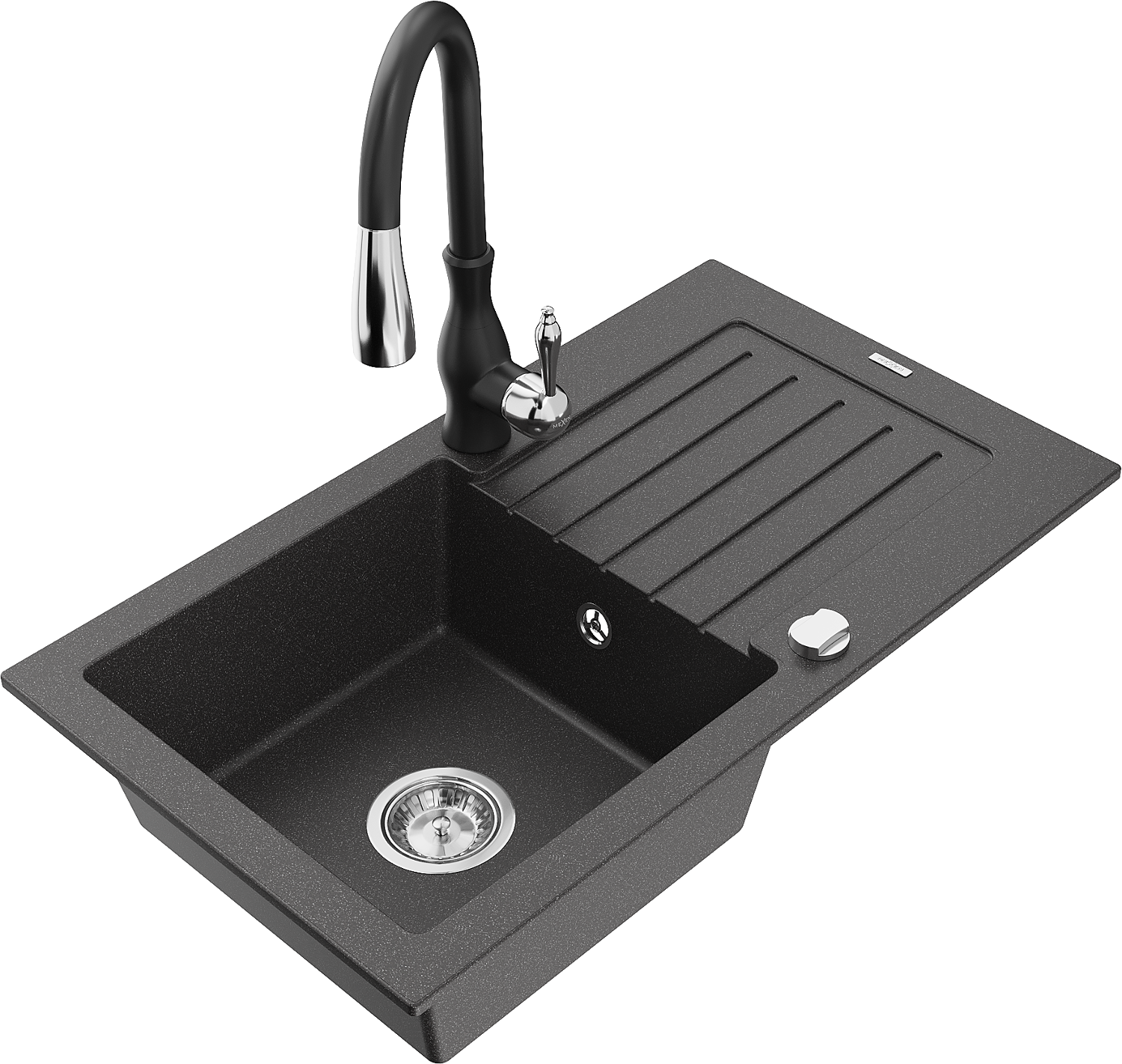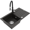 Mexen Pablo žulový dřez 1-komorový s odkapávačem a kuchyňskou baterií Savita, černý s tečkami - 6510-76-672601-70
