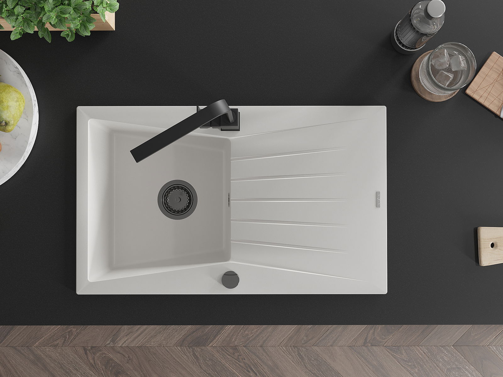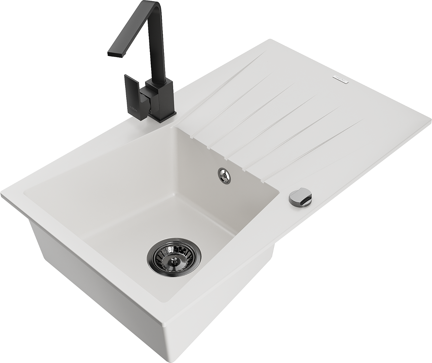 Povrch dřezu je odolný proti skvrnám a zabarvení, což usnadňuje jeho čištění a zachovává jeho barvu po dlouhou dobu používání. Estetický a praktický doplněk každé kuchyně.