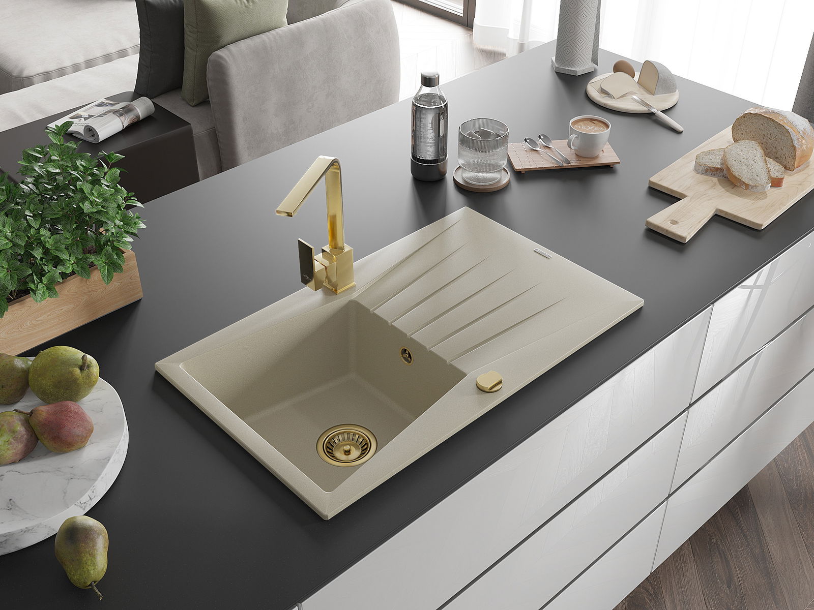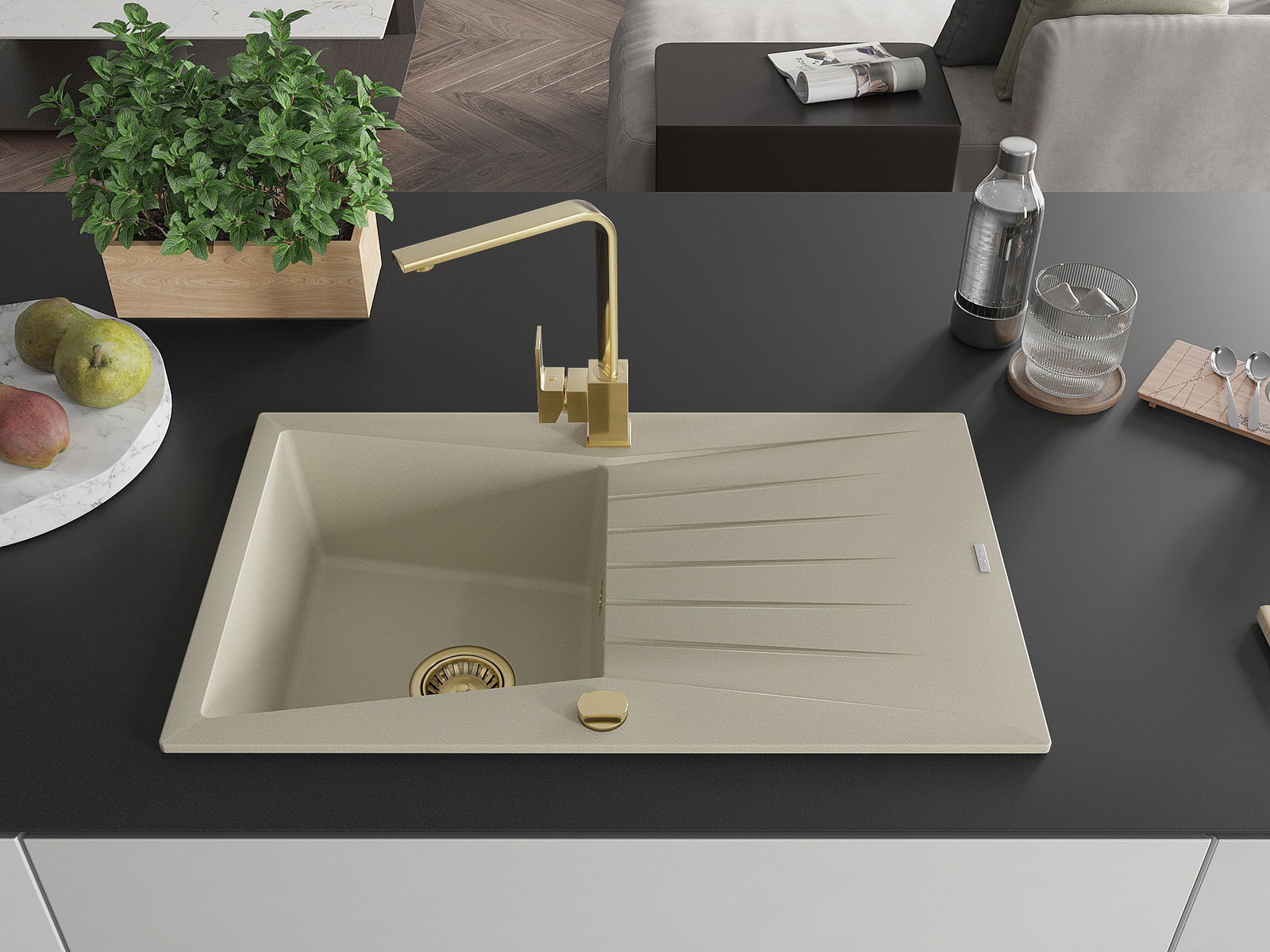 Dřez byl vyroben z vysoce kvalitního granitu. Představuje elegantní a především praktický doplněk každé kuchyně, bez ohledu na její styl. Vysoká kvalita a trvanlivost granitu zajišťují dlouholeté používání.
