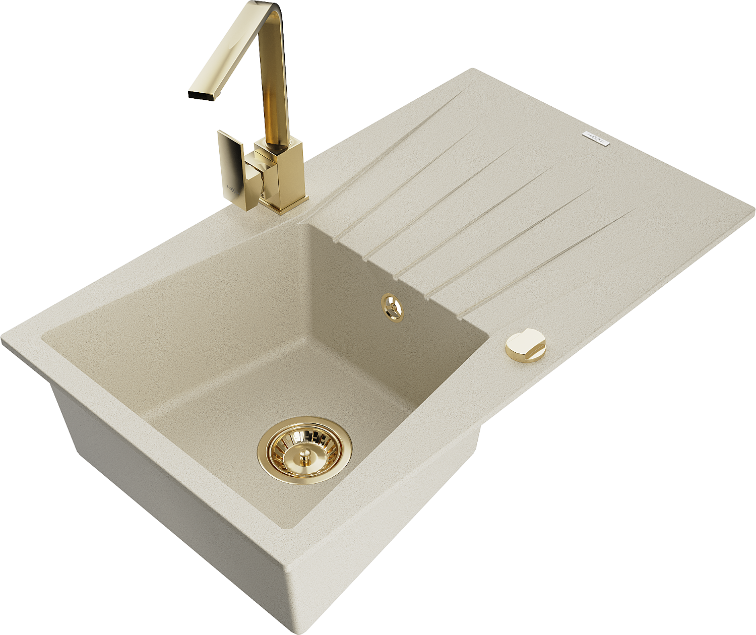 Mexen Cesar granitový dřez 1-komorový s odkapávačem a kuchyňskou baterií Rita, béžový - 6514-69-670300-50