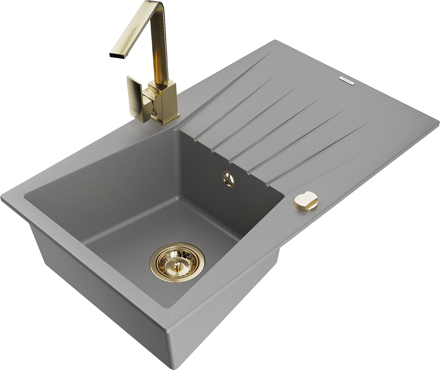 • Mexen Cesar jednokomorový granitový dřez s odkapávačem a kuchyňskou baterií Rita, šedý - 6514-71-670300-50