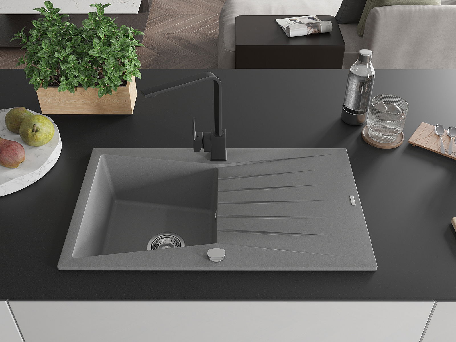 Dřez byl vyroben z vysoce kvalitního granitu. Představuje elegantní a především praktický doplněk každé kuchyně, bez ohledu na její styl. Vysoká kvalita a trvanlivost granitu zajišťují dlouholeté používání.