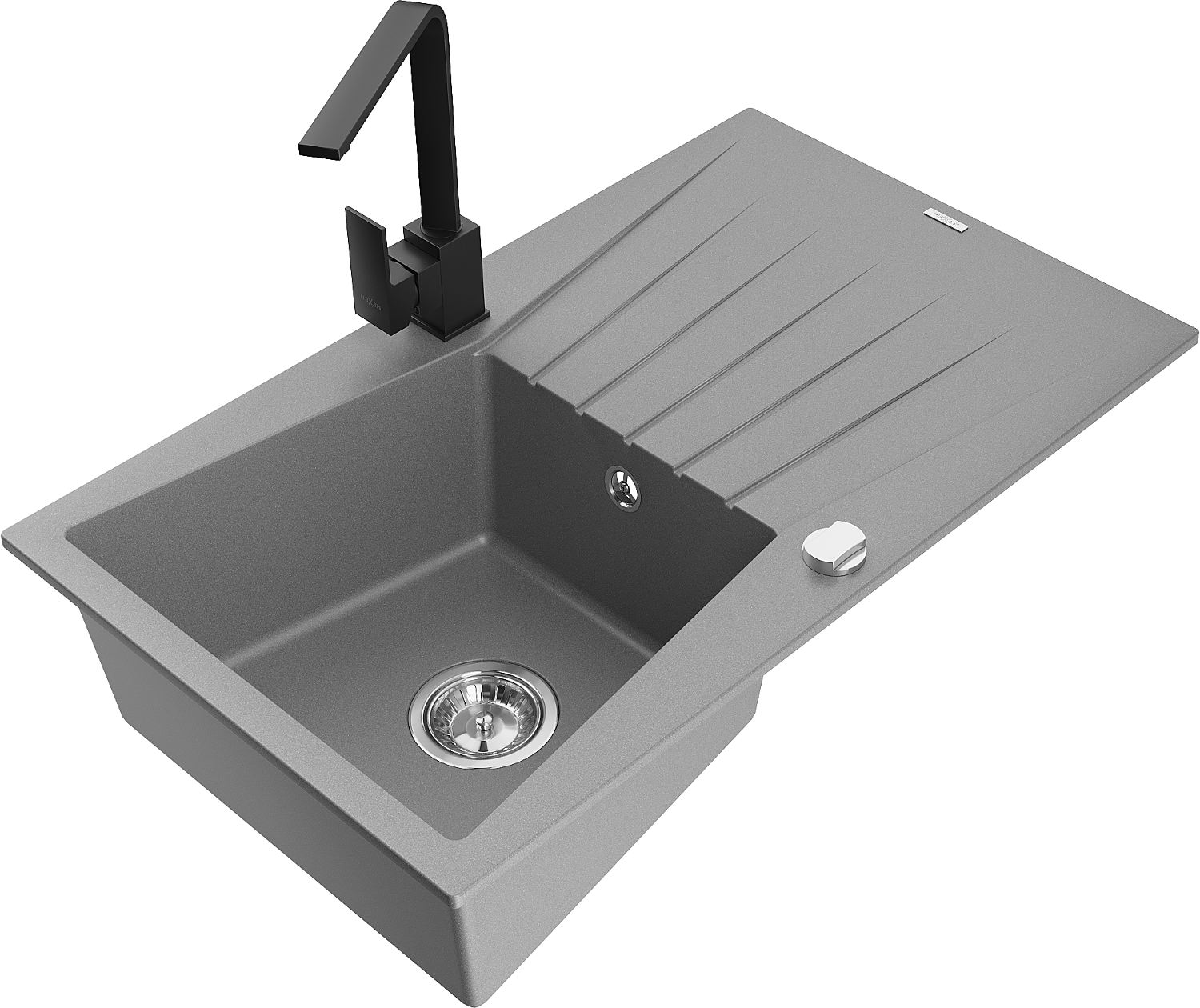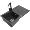 Mexen Cesar granitový dřez 1-komorový s odkapávačem a kuchyňskou baterií Rita, šedý - 6514-71-670300-70