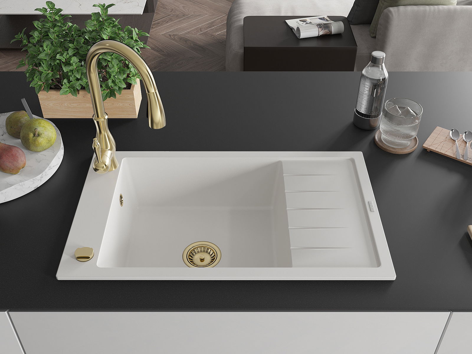 Dřez byl vyroben z vysoce kvalitního granitu. Představuje elegantní a především praktický doplněk každé kuchyně, bez ohledu na její styl. Vysoká kvalita a trvanlivost granitu zajišťují dlouholeté používání.