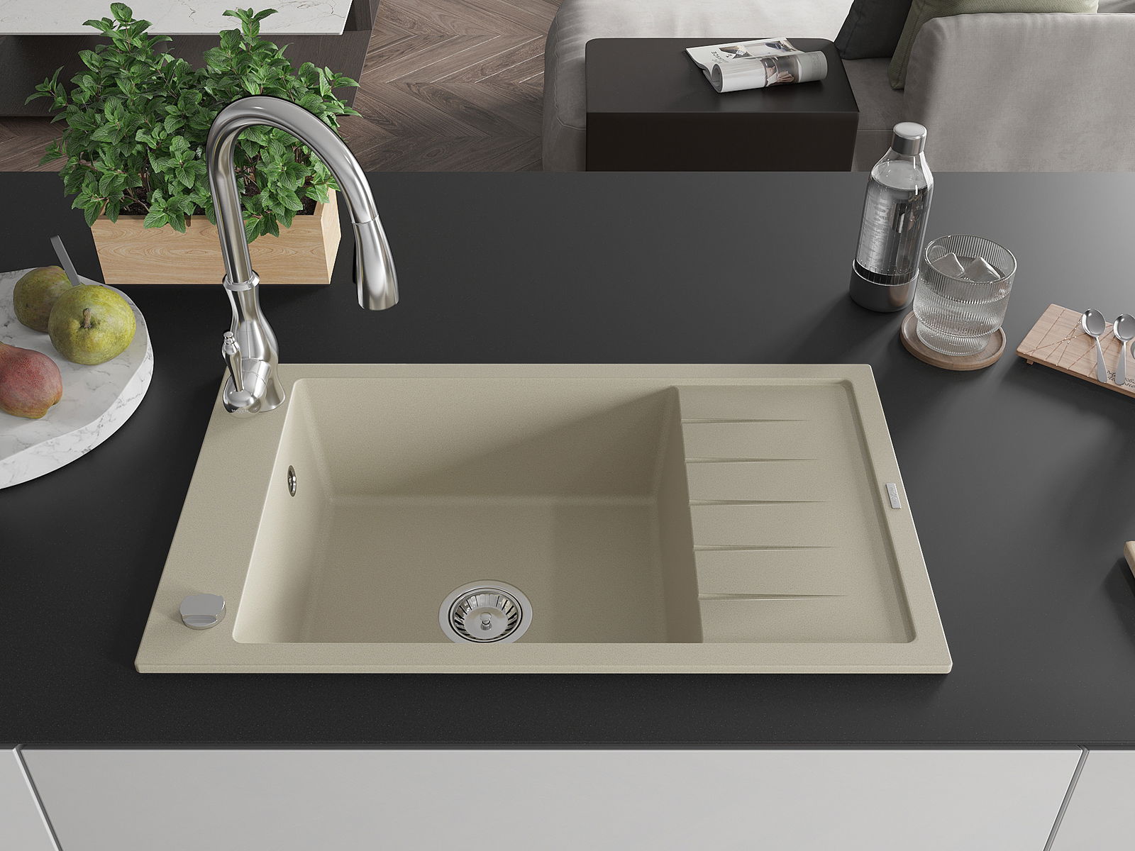 Dřez byl vyroben z vysoce kvalitního granitu. Představuje elegantní a především praktický doplněk každé kuchyně, bez ohledu na její styl. Vysoká kvalita a trvanlivost granitu zajišťují dlouholeté používání.