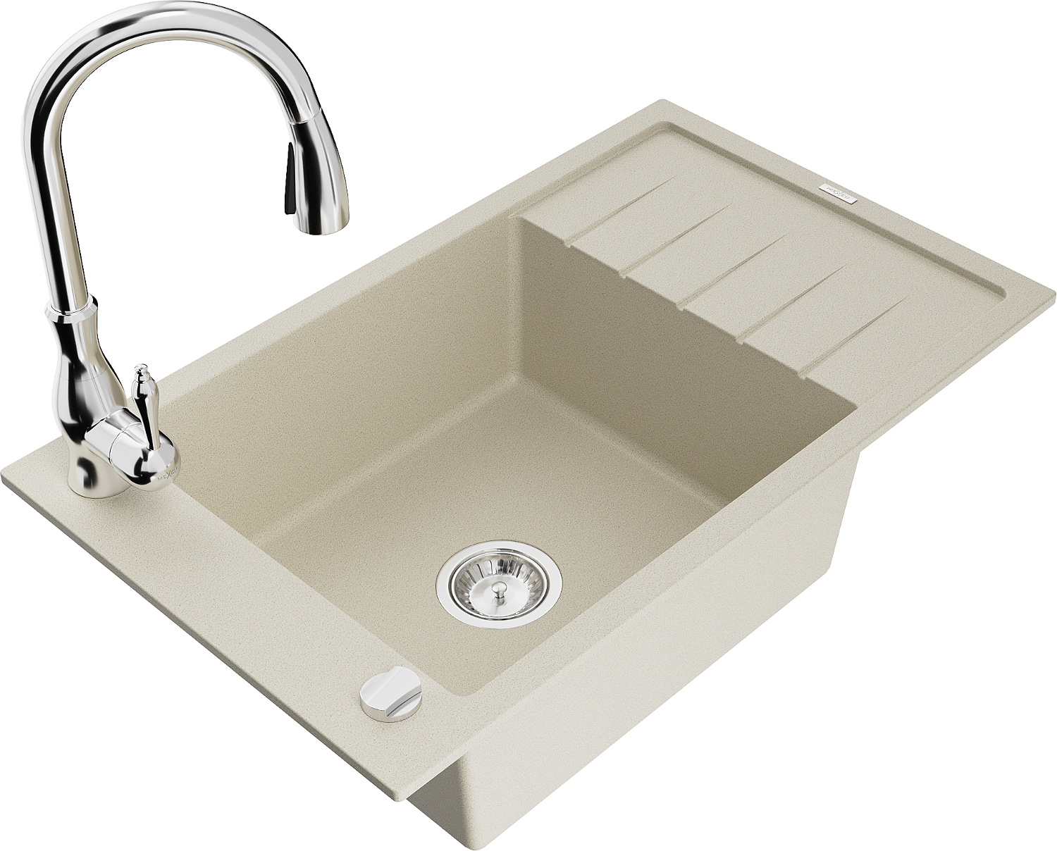 Mexen Elias granitový dřez 1-komorový s odkapávačem a kuchyňskou baterií Savita, béžový - 6511-69-672601-00