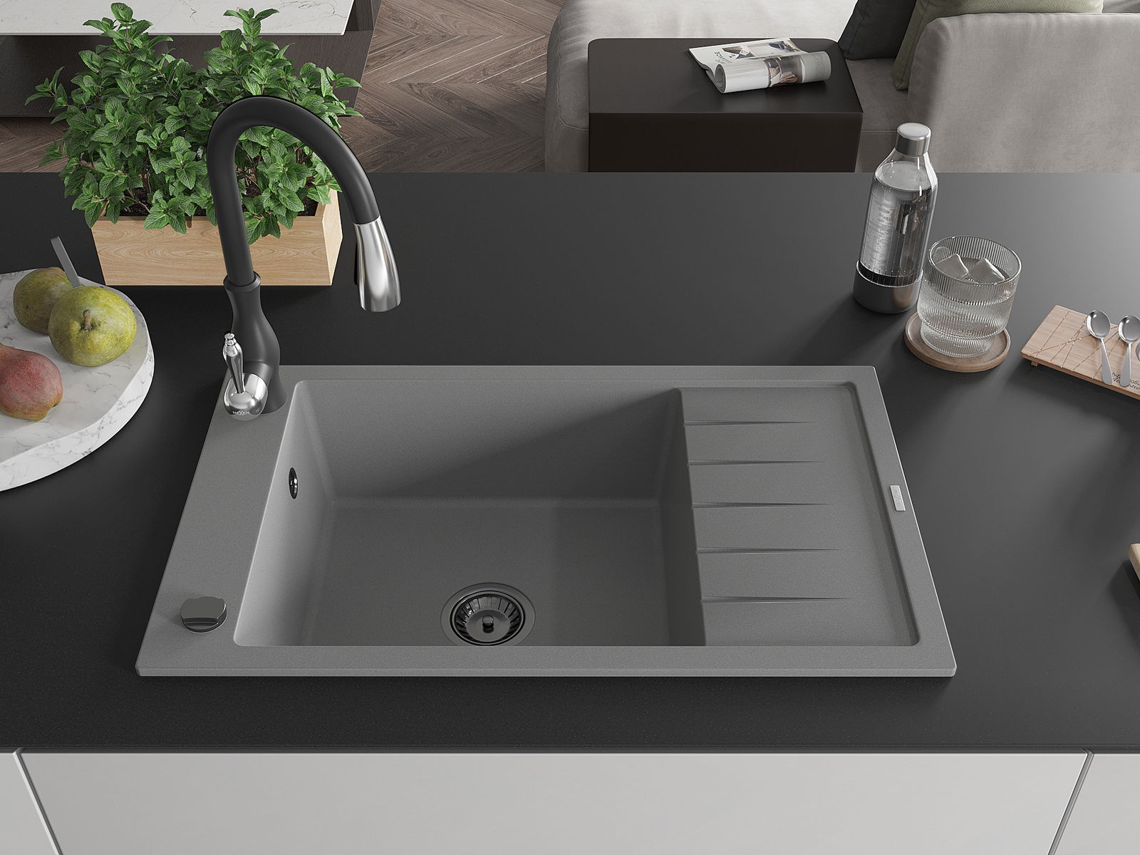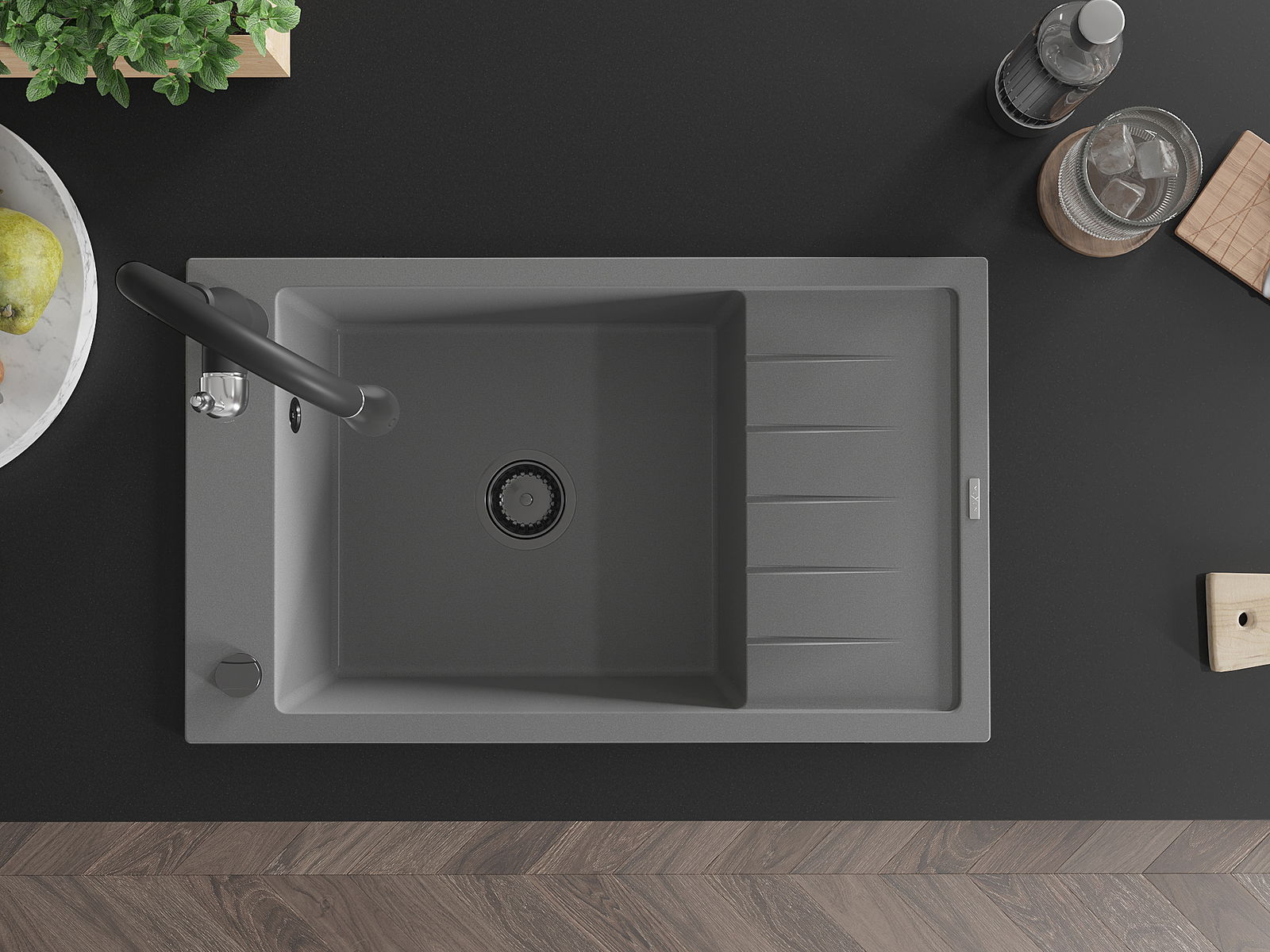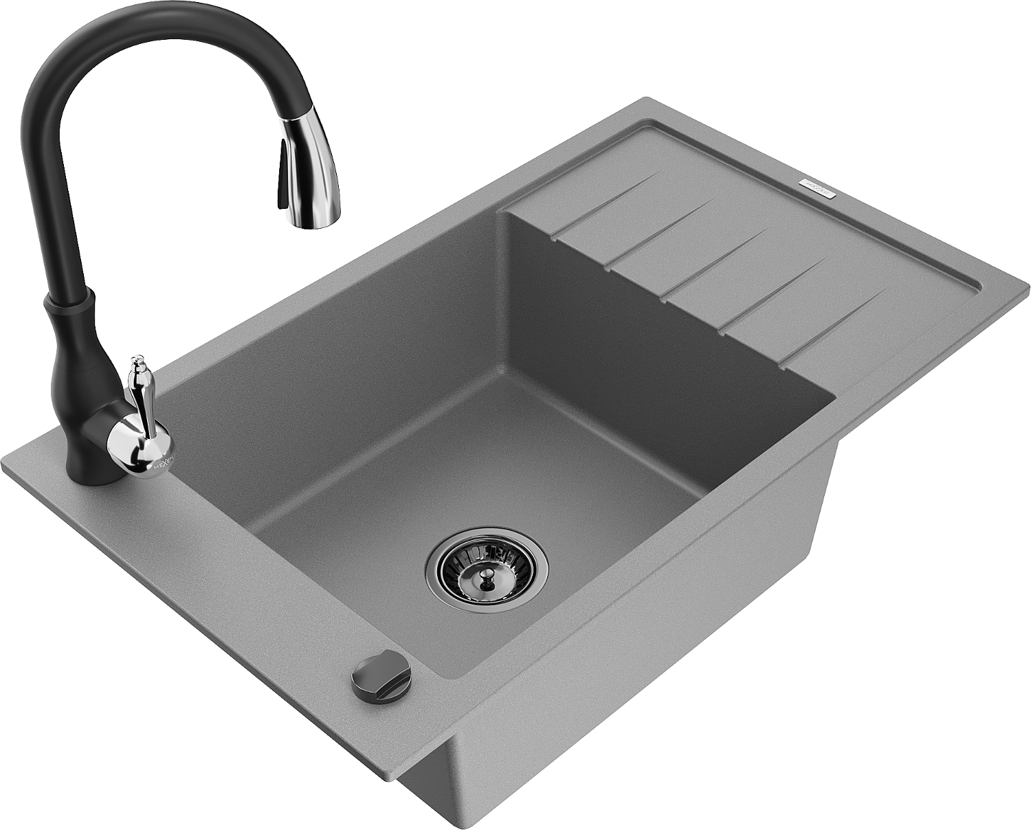 Mexen Elias dřez jednokomorový 1-komorový s odkapávačem a kuchyňskou baterií Savita, šedý - 6511-71-672601-70-B