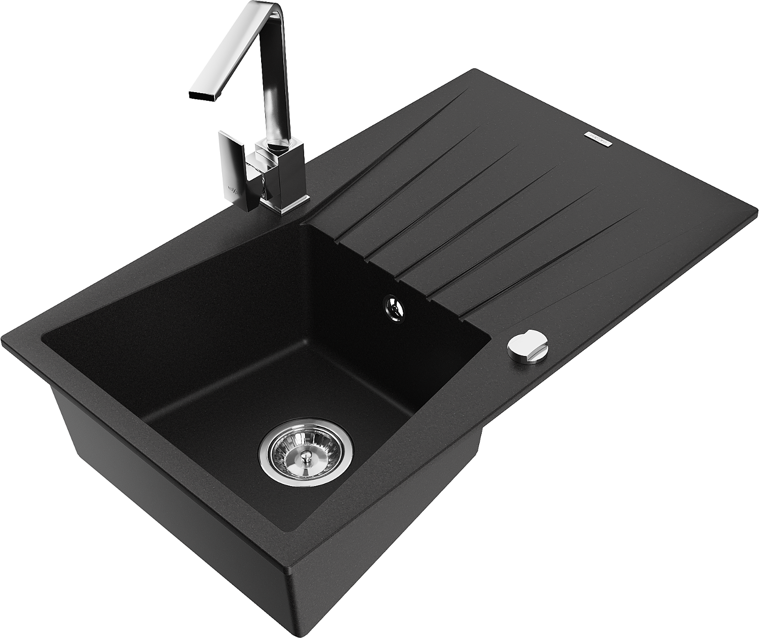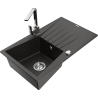 Mexen Cesar granitový dřez jednodřez s odkapávačem a kuchyňskou baterií Rita, černý - 6514-77-670300-00