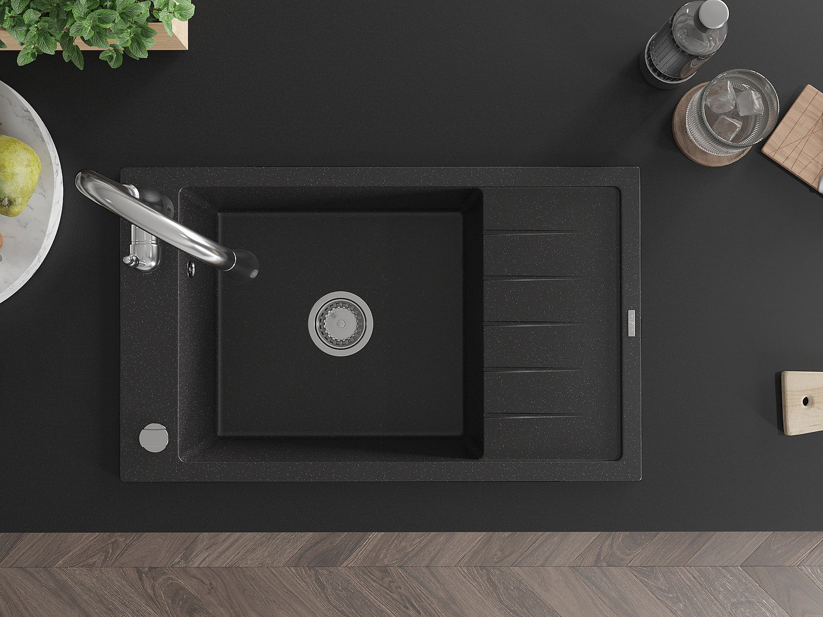 Dřez byl vyroben z vysoce kvalitního granitu. Představuje elegantní a především praktický doplněk každé kuchyně, bez ohledu na její styl. Vysoká kvalita a trvanlivost granitu zajišťují dlouholeté používání.