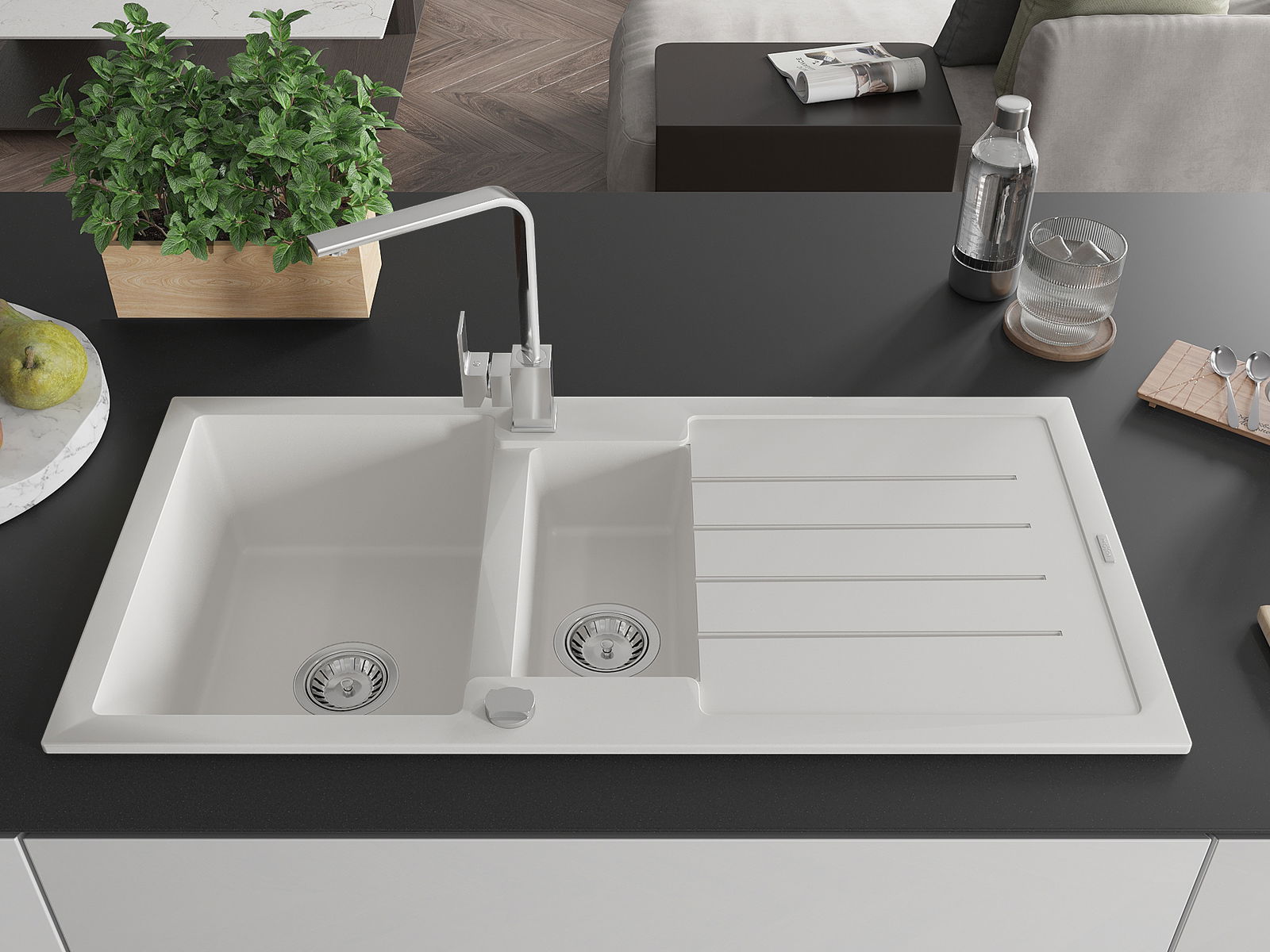 Dřez byl vyroben z vysoce kvalitního granitu. Představuje elegantní a především praktický doplněk každé kuchyně, bez ohledu na její styl. Vysoká kvalita a trvanlivost granitu zajišťují dlouholeté používání.