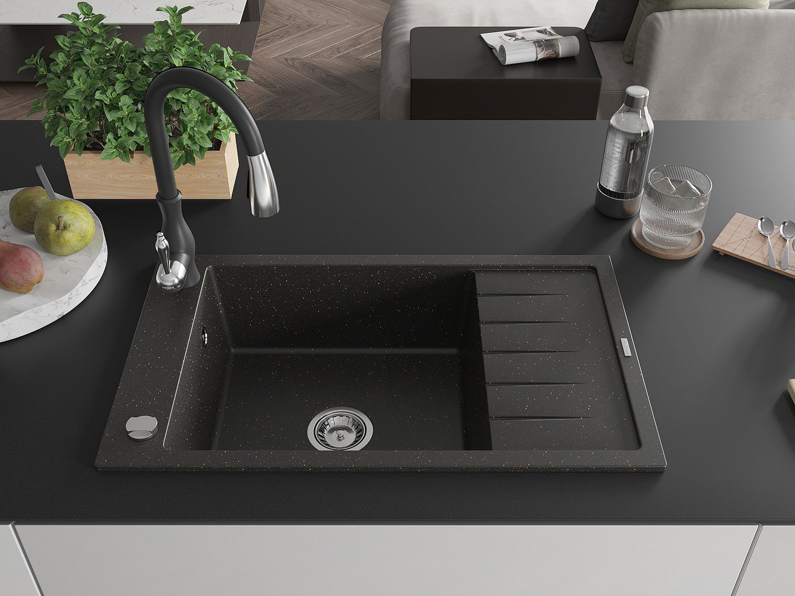 Dřez byl vyroben z vysoce kvalitního granitu. Představuje elegantní a především praktický doplněk každé kuchyně, bez ohledu na její styl. Vysoká kvalita a trvanlivost granitu zajišťují dlouholeté používání.