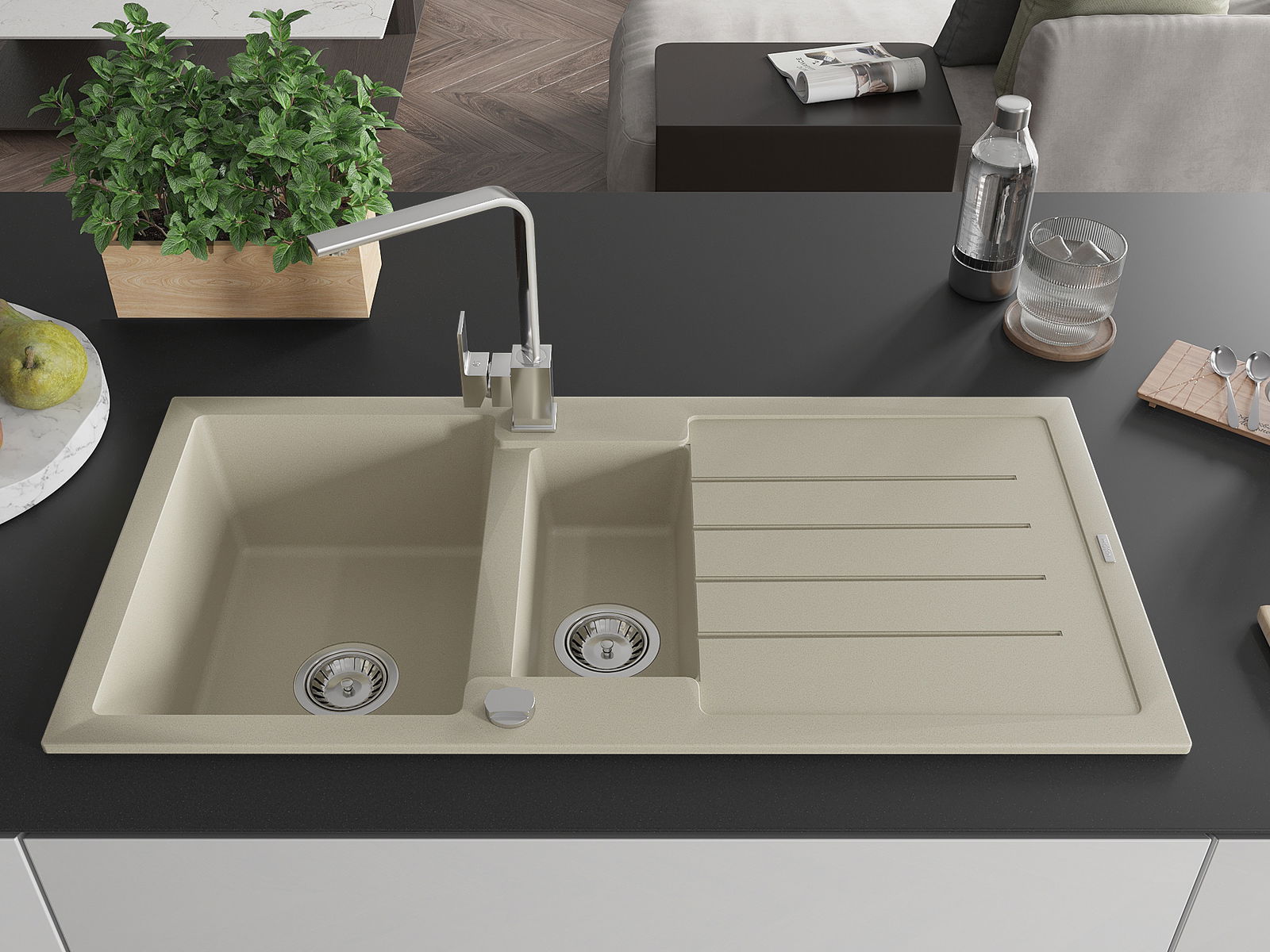 Dřez byl vyroben z vysoce kvalitního granitu. Představuje elegantní a především praktický doplněk každé kuchyně, bez ohledu na její styl. Vysoká kvalita a trvanlivost granitu zajišťují dlouholeté používání.