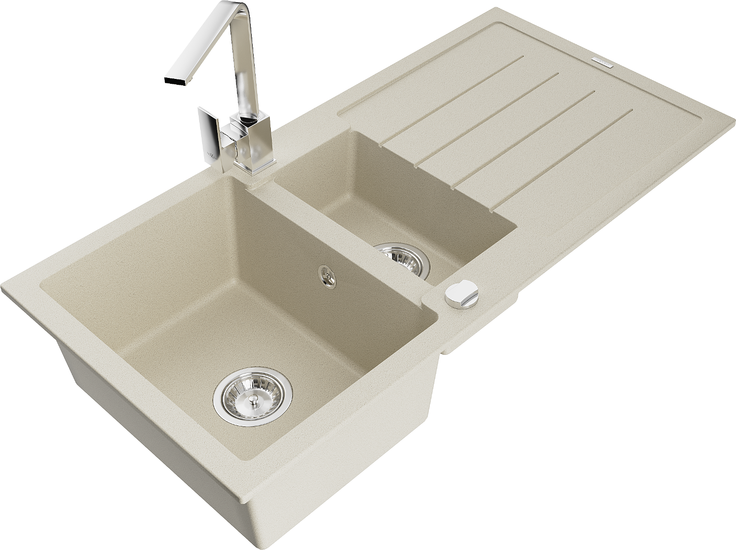 Mexen Andres granitový dřez 1,5 komorový s odkapávačem a kuchyňskou baterií Rita, béžový - 6515-69-670300-00