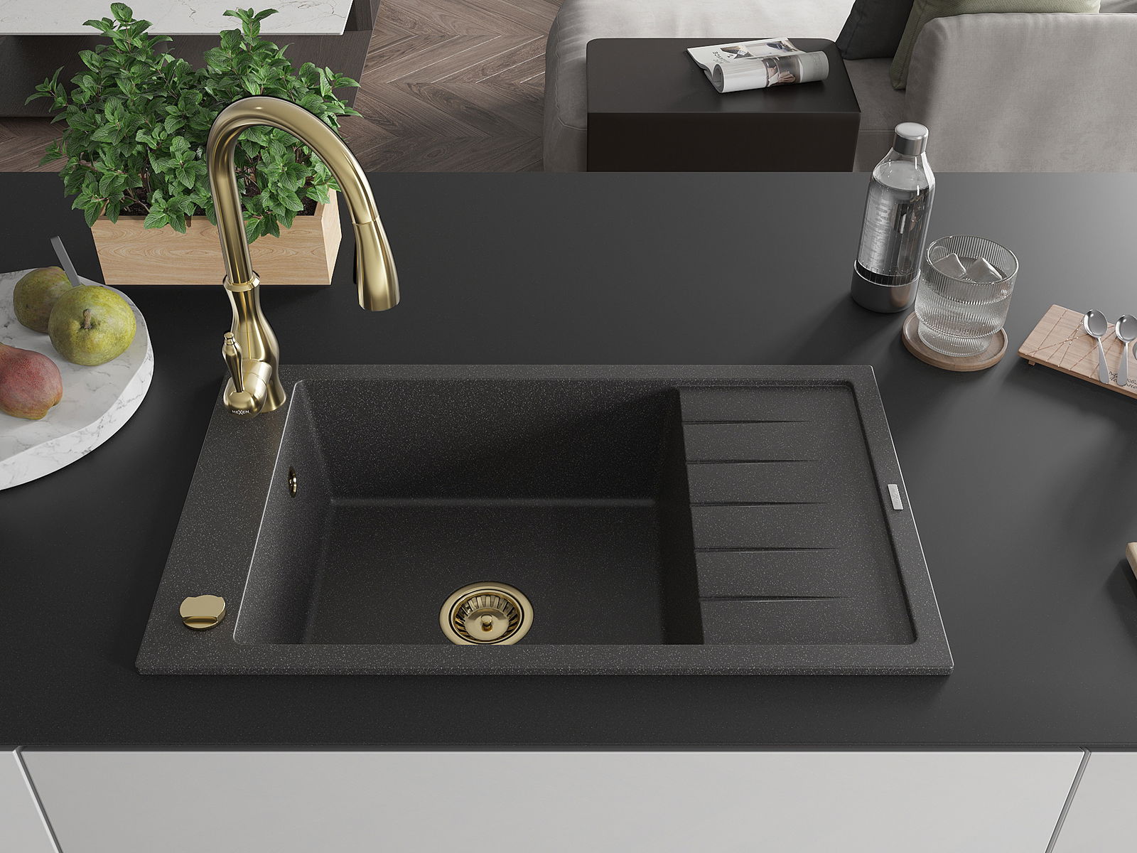 Dřez byl vyroben z vysoce kvalitního granitu. Představuje elegantní a především praktický doplněk každé kuchyně, bez ohledu na její styl. Vysoká kvalita a trvanlivost granitu zajišťují dlouholeté používání.