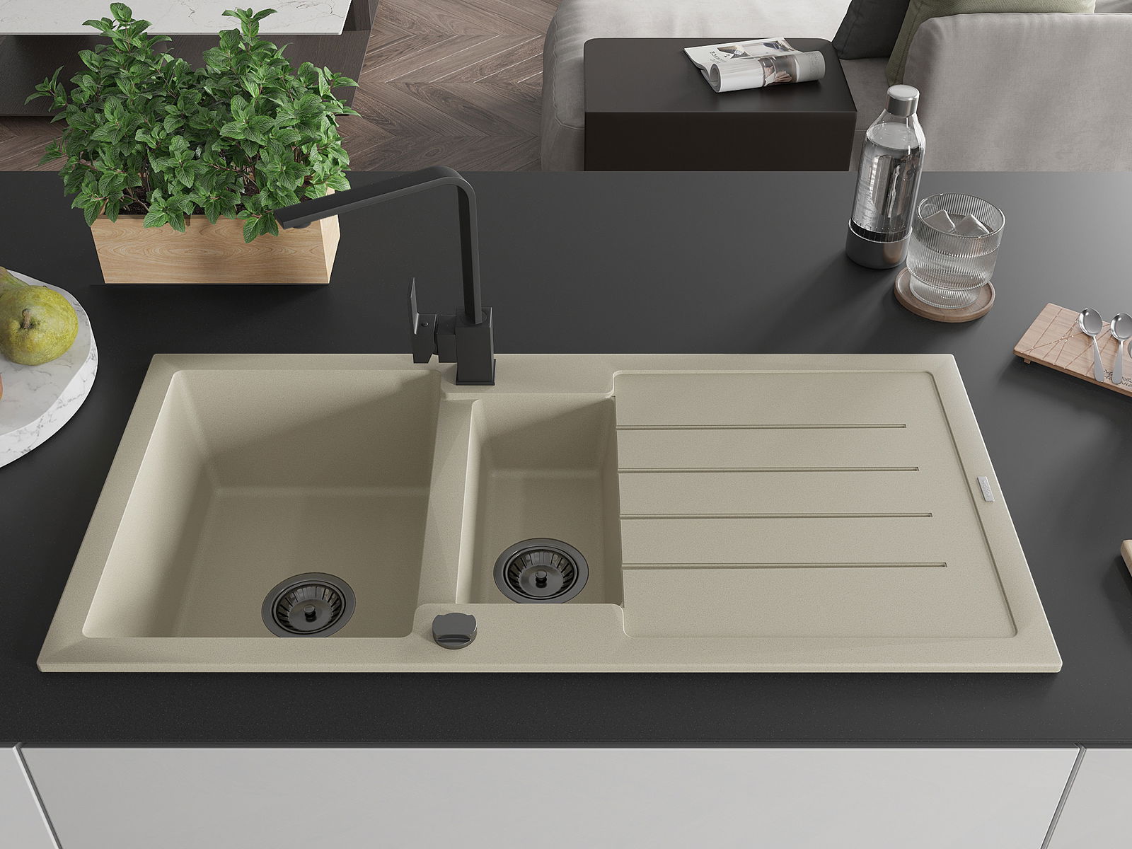 Dřez byl vyroben z vysoce kvalitního granitu. Představuje elegantní a především praktický doplněk každé kuchyně, bez ohledu na její styl. Vysoká kvalita a trvanlivost granitu zajišťují dlouholeté používání.