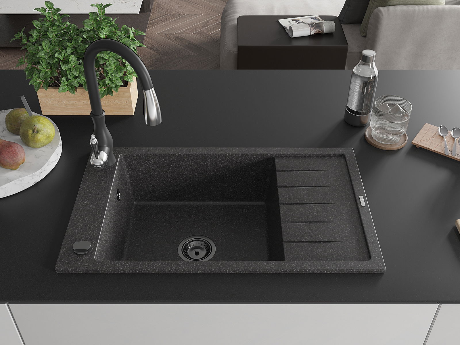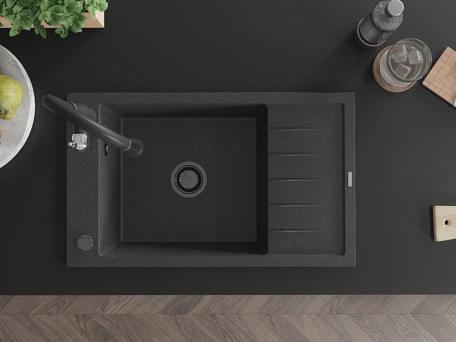 Dřez byl vyroben z vysoce kvalitního granitu. Představuje elegantní a především praktický doplněk každé kuchyně, bez ohledu na její styl. Vysoká kvalita a trvanlivost granitu zajišťují dlouholeté používání.