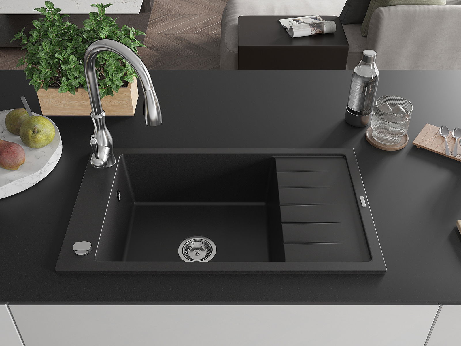 Dřez byl vyroben z vysoce kvalitního granitu. Představuje elegantní a především praktický doplněk každé kuchyně, bez ohledu na její styl. Vysoká kvalita a trvanlivost granitu zajišťují dlouholeté používání.