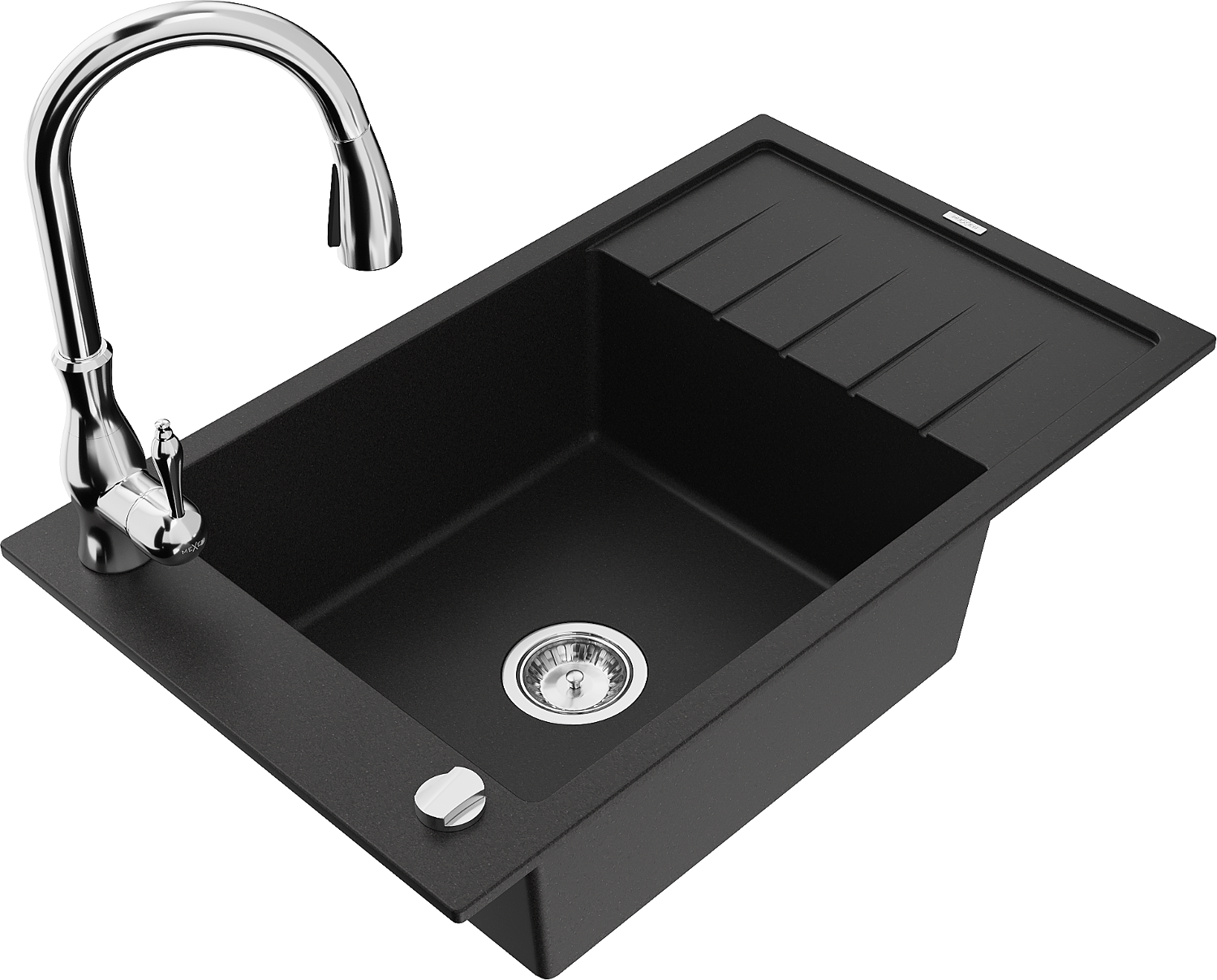 Mexen Elias granitový dřez 1-komorový s odkapávačem a kuchyňskou baterií Savita, černý - 6511-77-672601-00