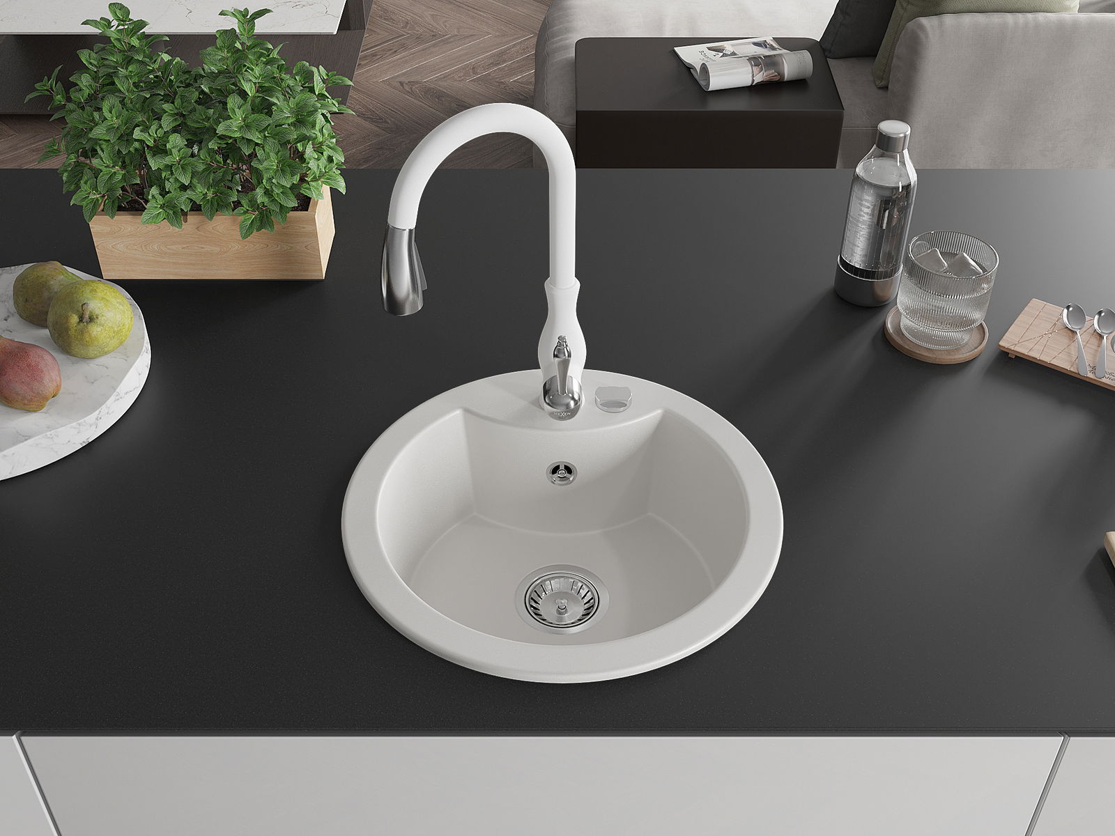 Povrch dřezu je odolný proti skvrnám a zabarvení, což usnadňuje jeho čištění a zachovává jeho barvu po dlouhou dobu používání. Estetický a praktický doplněk každé kuchyně.