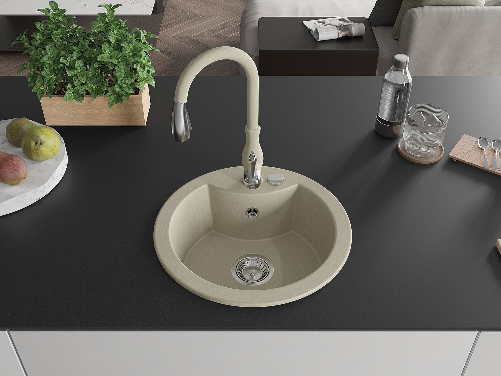 Dřez byl vyroben z vysoce kvalitního granitu. Představuje elegantní a především praktický doplněk každé kuchyně, bez ohledu na její styl. Vysoká kvalita a trvanlivost granitu zajišťují dlouholeté používání.