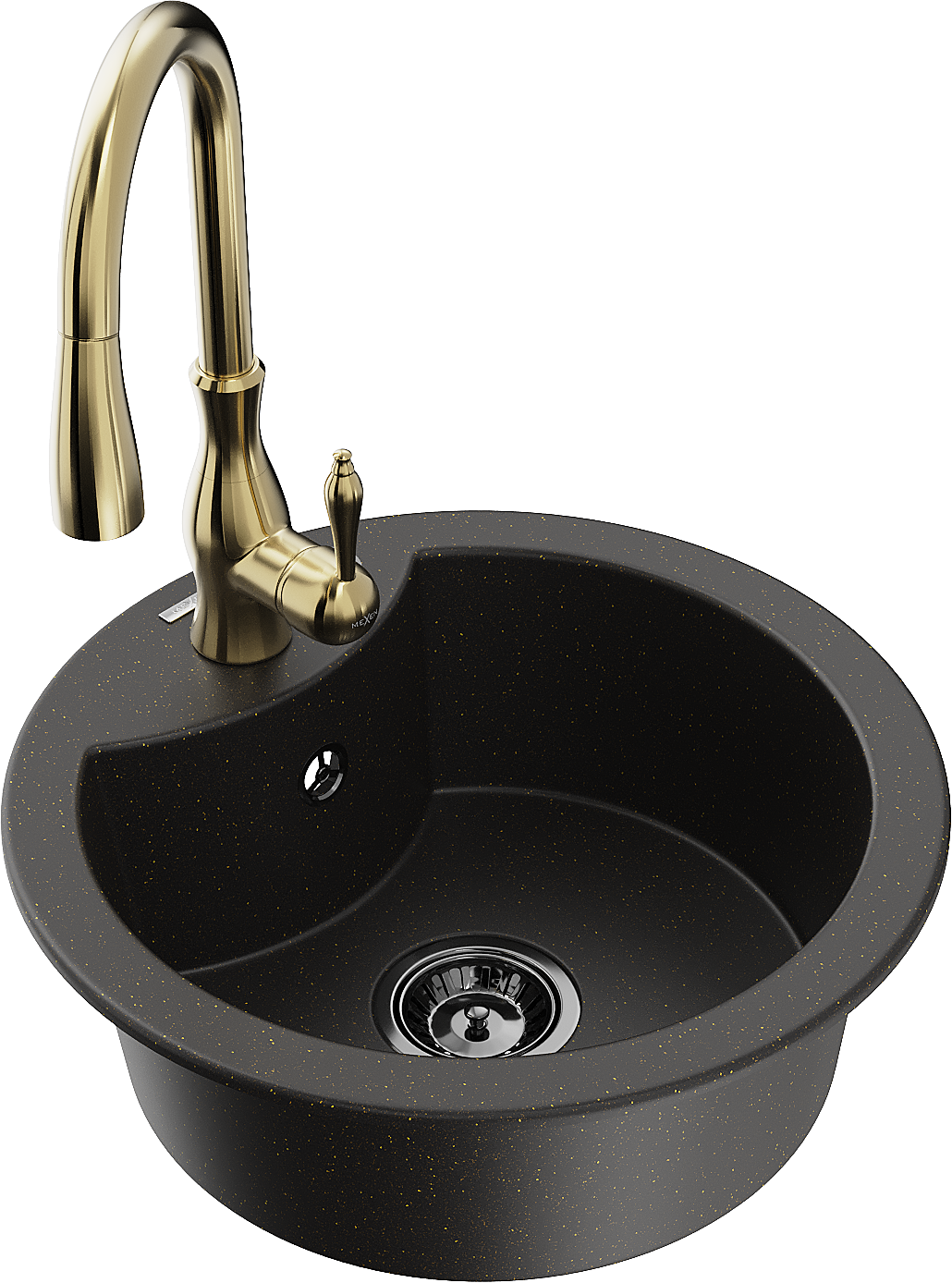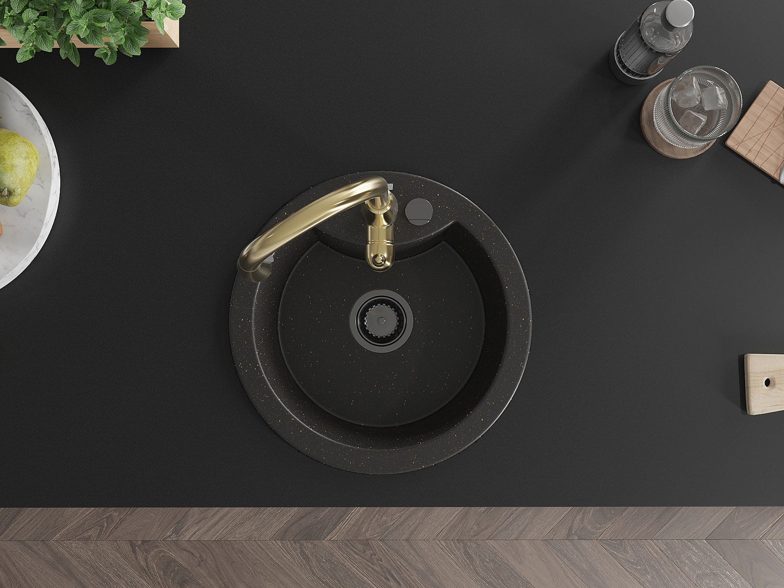 Mexen Diego granitový dřez 1-komorový s kuchyňskou baterií Savita, černý/zlatý metalik - 6512-75-672601-50-B