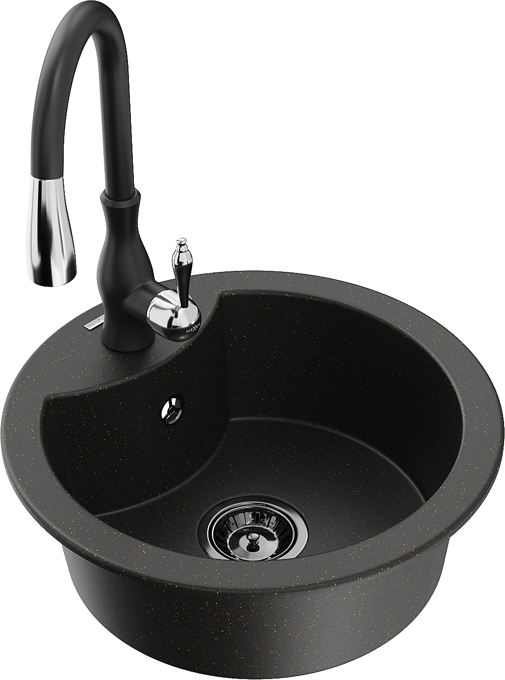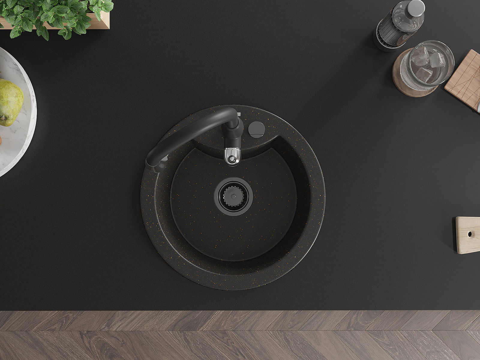 Mexen Diego granitový dřez s baterií Savita, černý/zlatý metalický - 6512-75-672601-70-B