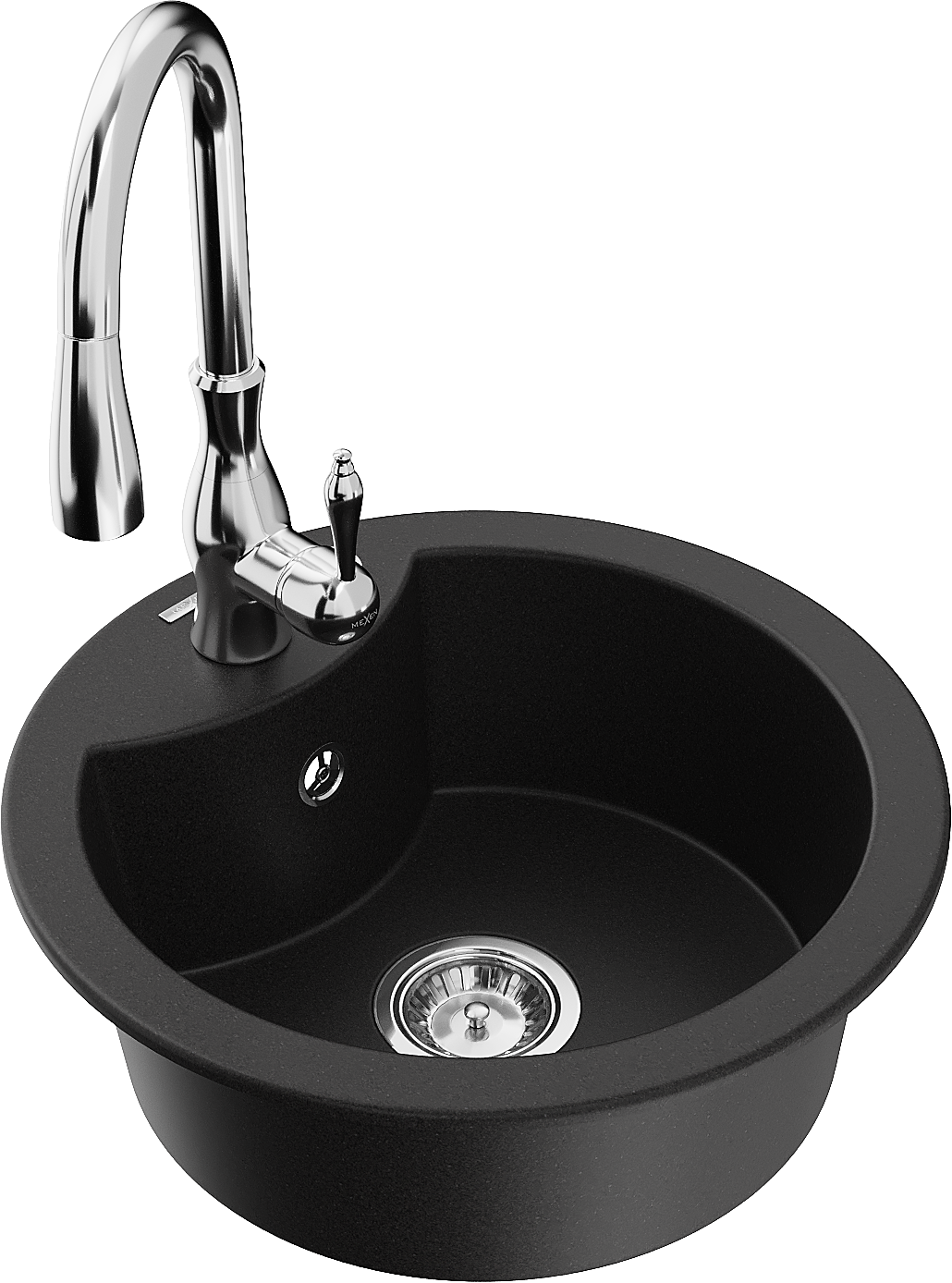 Mexen Diego granitový dřez 1-komorový s kuchyňskou baterií Savita, černý - 6512-77-672601-00