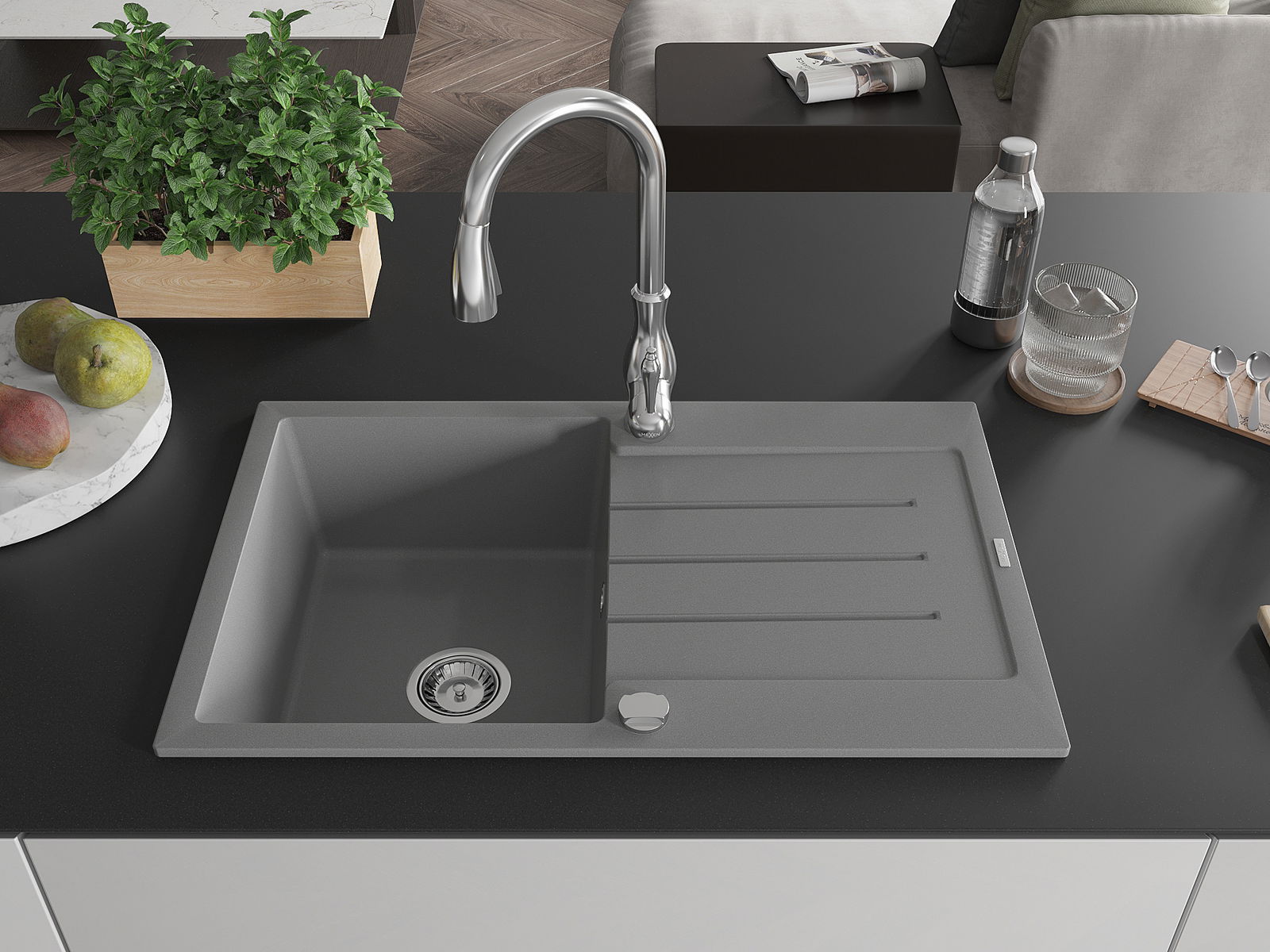 Dřez byl vyroben z vysoce kvalitního granitu. Představuje elegantní a především praktický doplněk každé kuchyně, bez ohledu na její styl. Vysoká kvalita a trvanlivost granitu zajišťují dlouholeté používání.