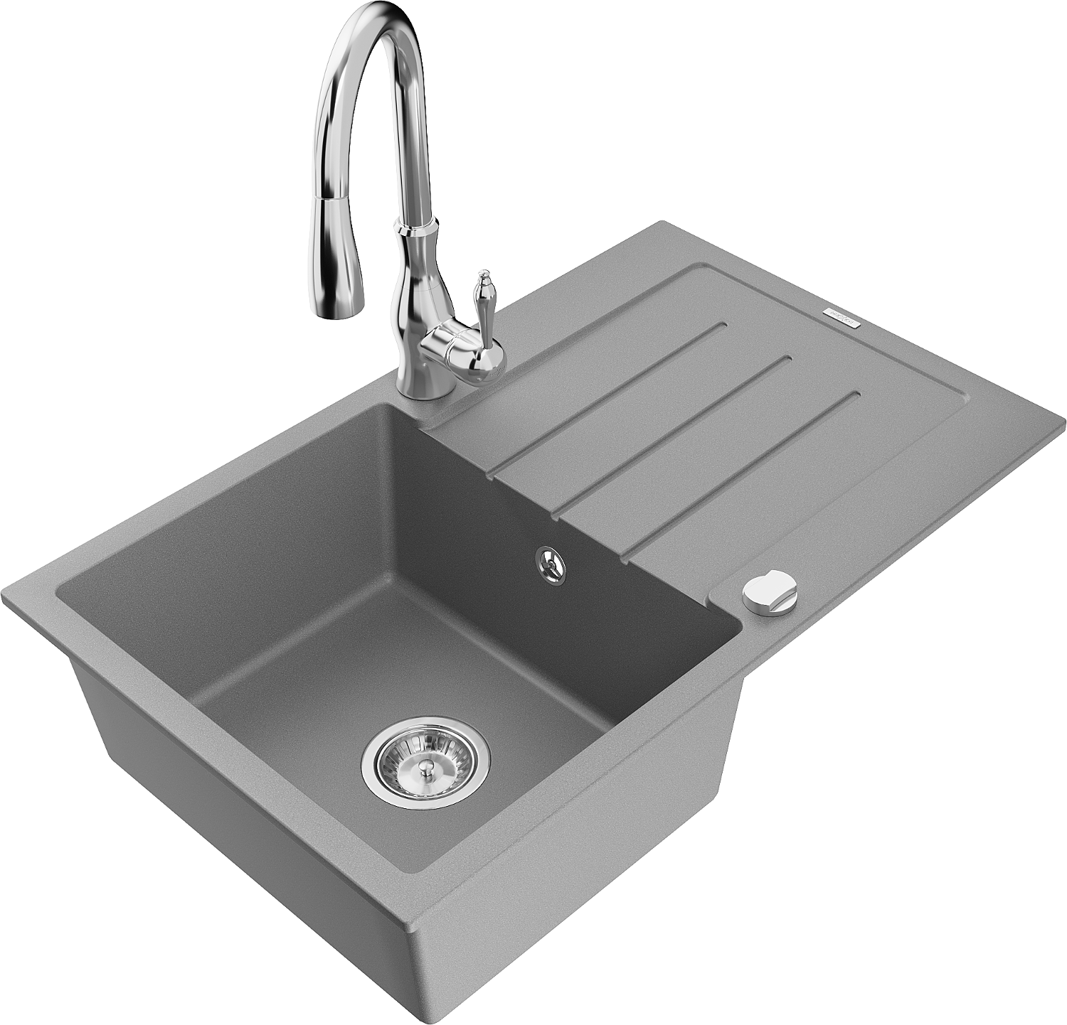 Mexen Bruno granitový dřez 1-komorový s odkapávačem a kuchyňskou baterií Savita, šedý - 6513-71-672601-00