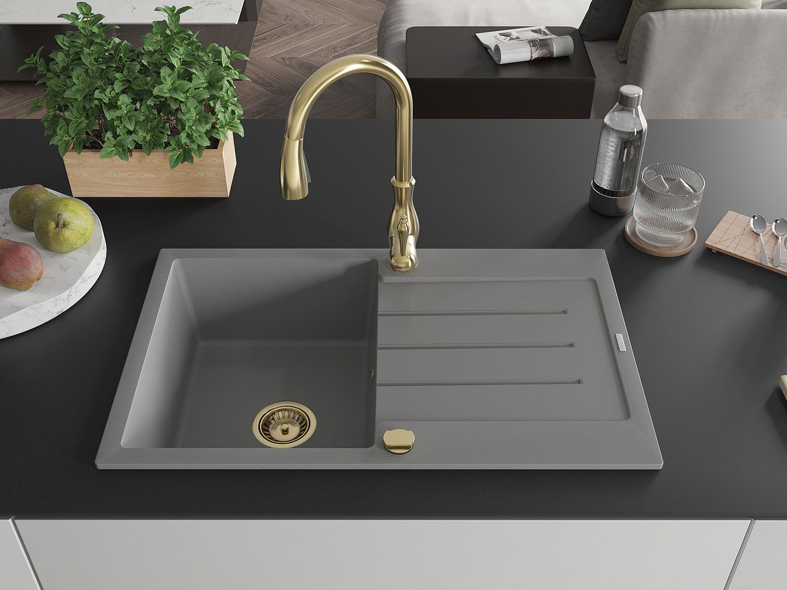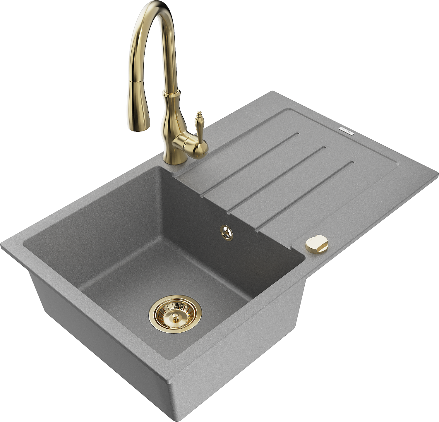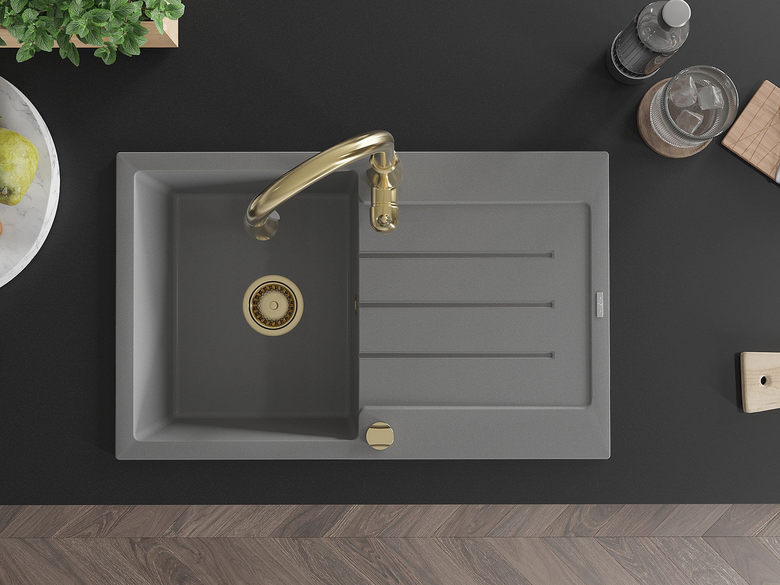 Mexen Bruno jednorázový granulátový dřez s odkapávačem a kuchyňskou baterií Savita, šedý - 6513-71-672601-50