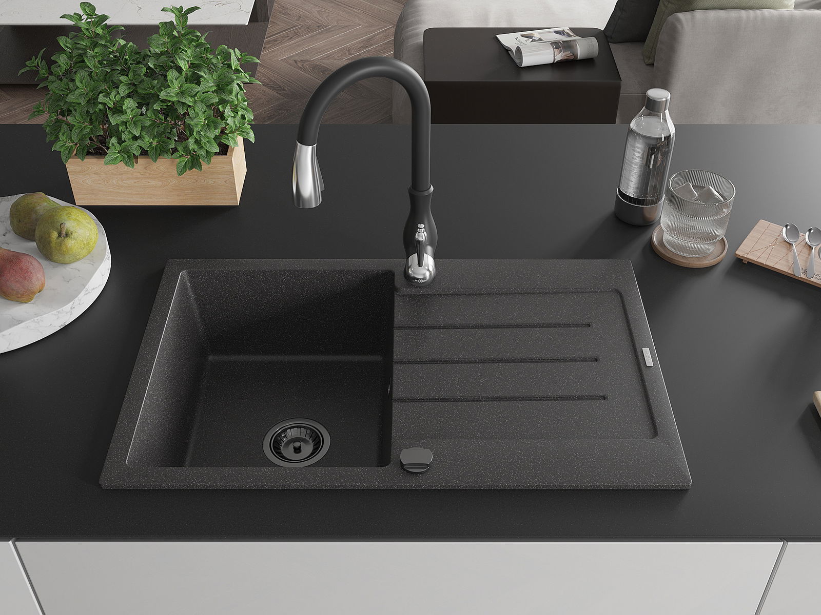 Dřez byl vyroben z vysoce kvalitního granitu. Představuje elegantní a především praktický doplněk každé kuchyně, bez ohledu na její styl. Vysoká kvalita a trvanlivost granitu zajišťují dlouholeté používání.