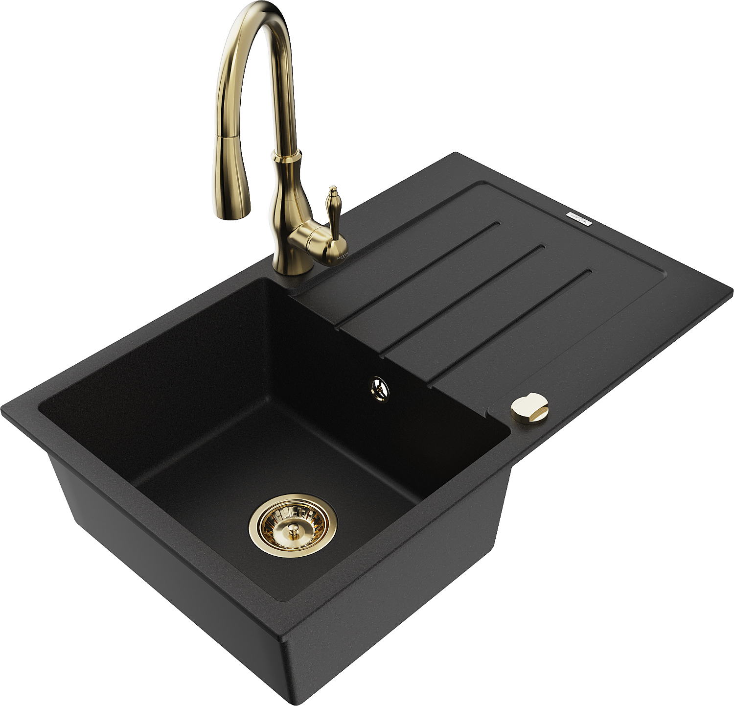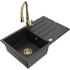 Mexen Bruno granitový dřez 1-komorový s odkapávačem a kuchyňskou baterií Savita, černý - 6513-77-672601-50
