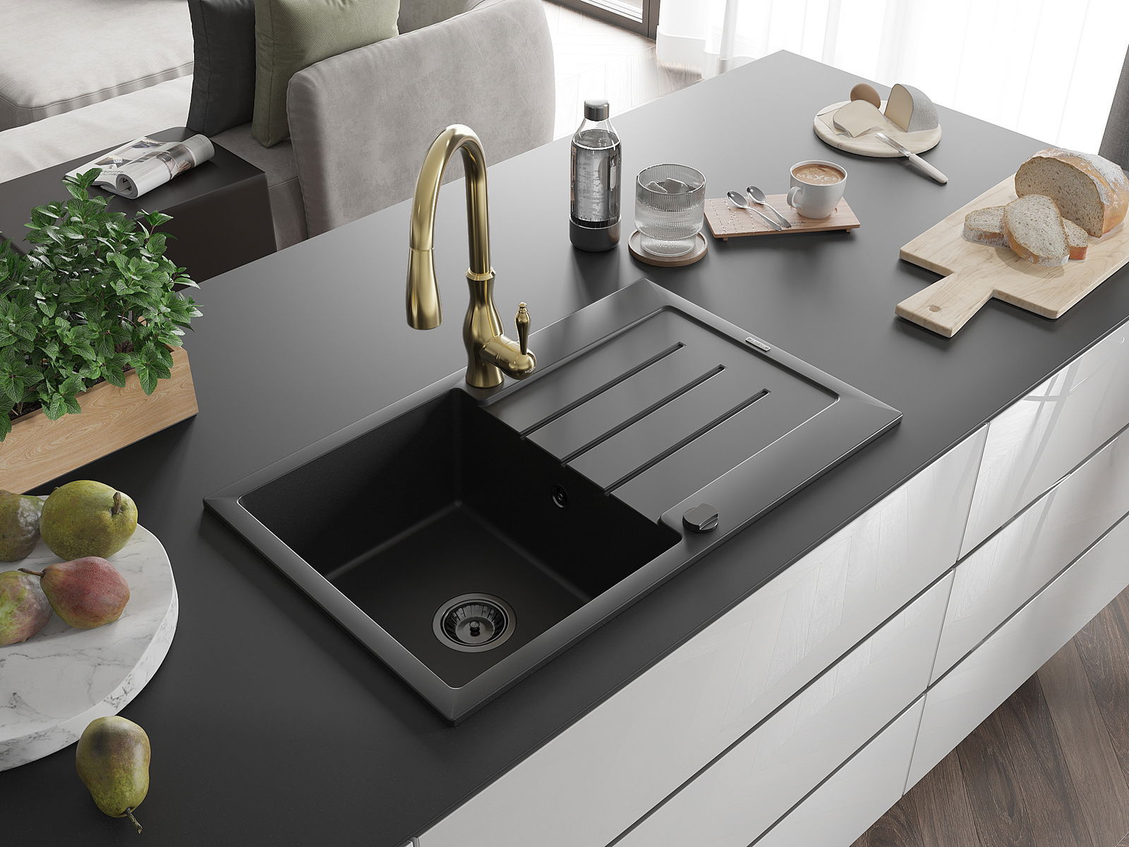 Dřez byl vyroben z vysoce kvalitního granitu. Představuje elegantní a především praktický doplněk každé kuchyně, bez ohledu na její styl. Vysoká kvalita a trvanlivost granitu zajišťují dlouholeté používání.