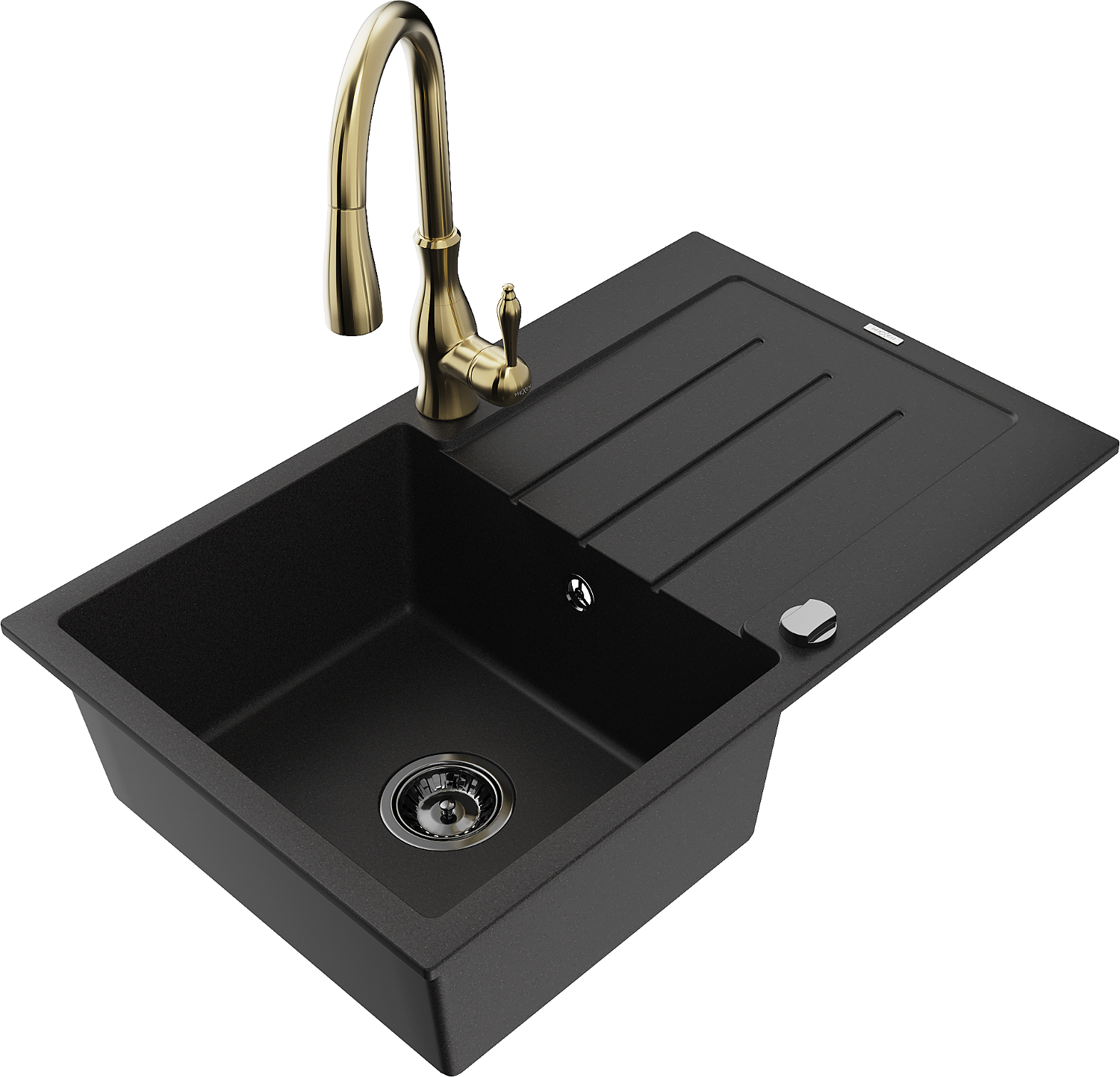 Mexen Bruno granitový dřez jednokomorový s odkapávačem a kuchyňskou baterií Savita, černý - 6513-77-672601-50-B