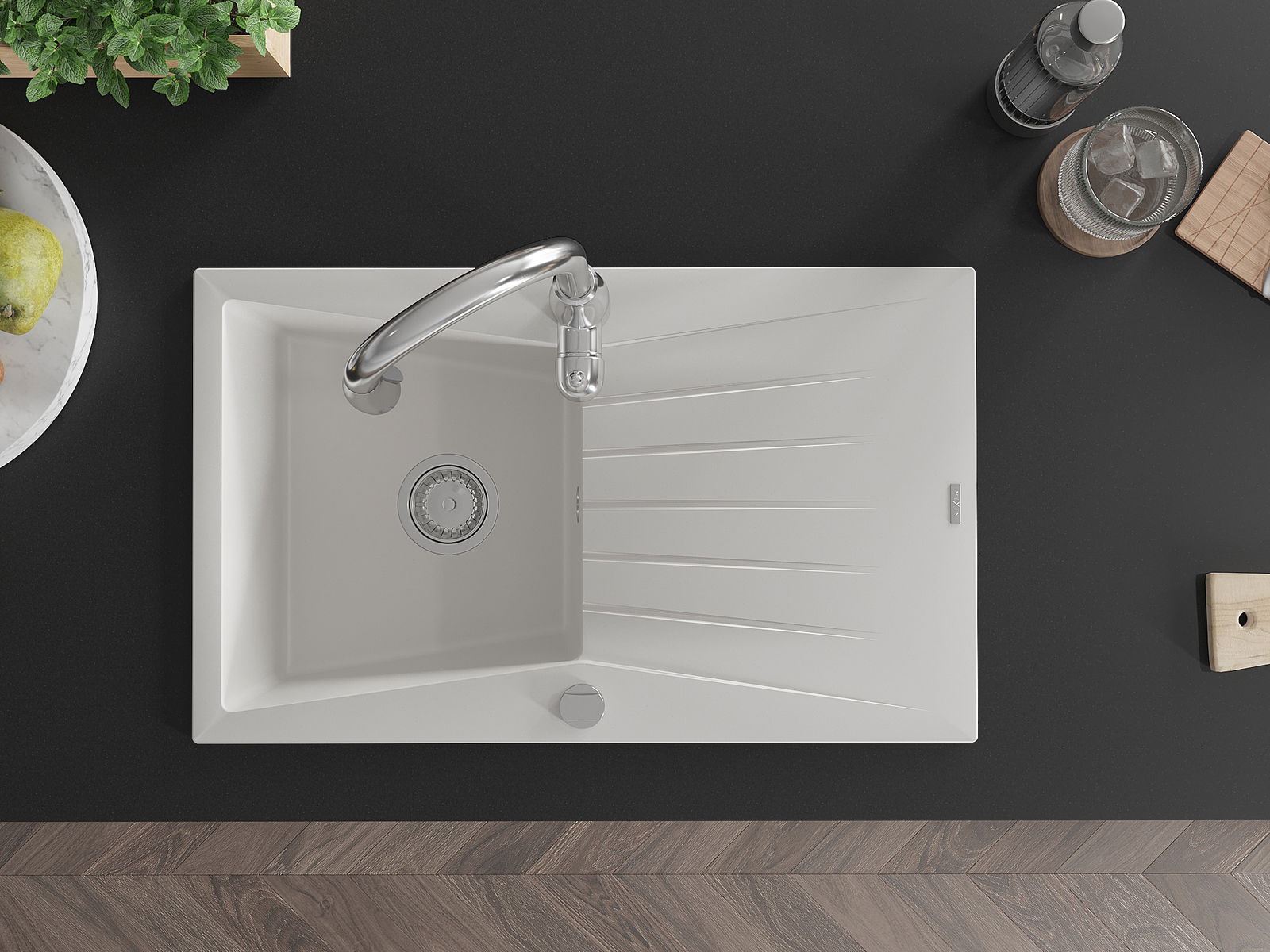 Povrch dřezu je velmi dobře vytvrzený, vyznačuje se výjimečnou odolností proti mechanickému poškození a poškrábání. Trvanlivý materiál umožňuje užívat si dobrý vzhled dřezu po mnoho let používání.