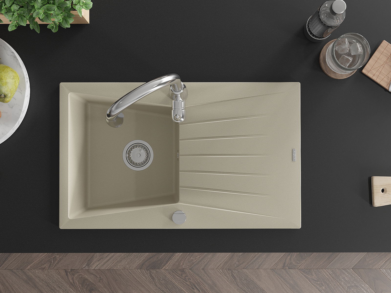 Dřez byl vyroben z vysoce kvalitního granitu. Představuje elegantní a především praktický doplněk každé kuchyně, bez ohledu na její styl. Vysoká kvalita a trvanlivost granitu zajišťují dlouholeté používání.
