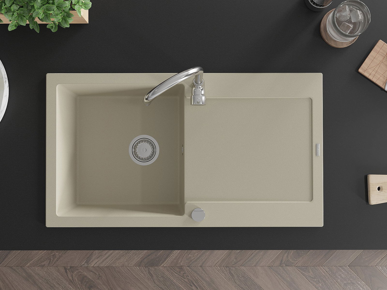 Dřez byl vyroben z vysoce kvalitního granitu. Představuje elegantní a především praktický doplněk každé kuchyně, bez ohledu na její styl. Vysoká kvalita a trvanlivost granitu zajišťují dlouholeté používání.