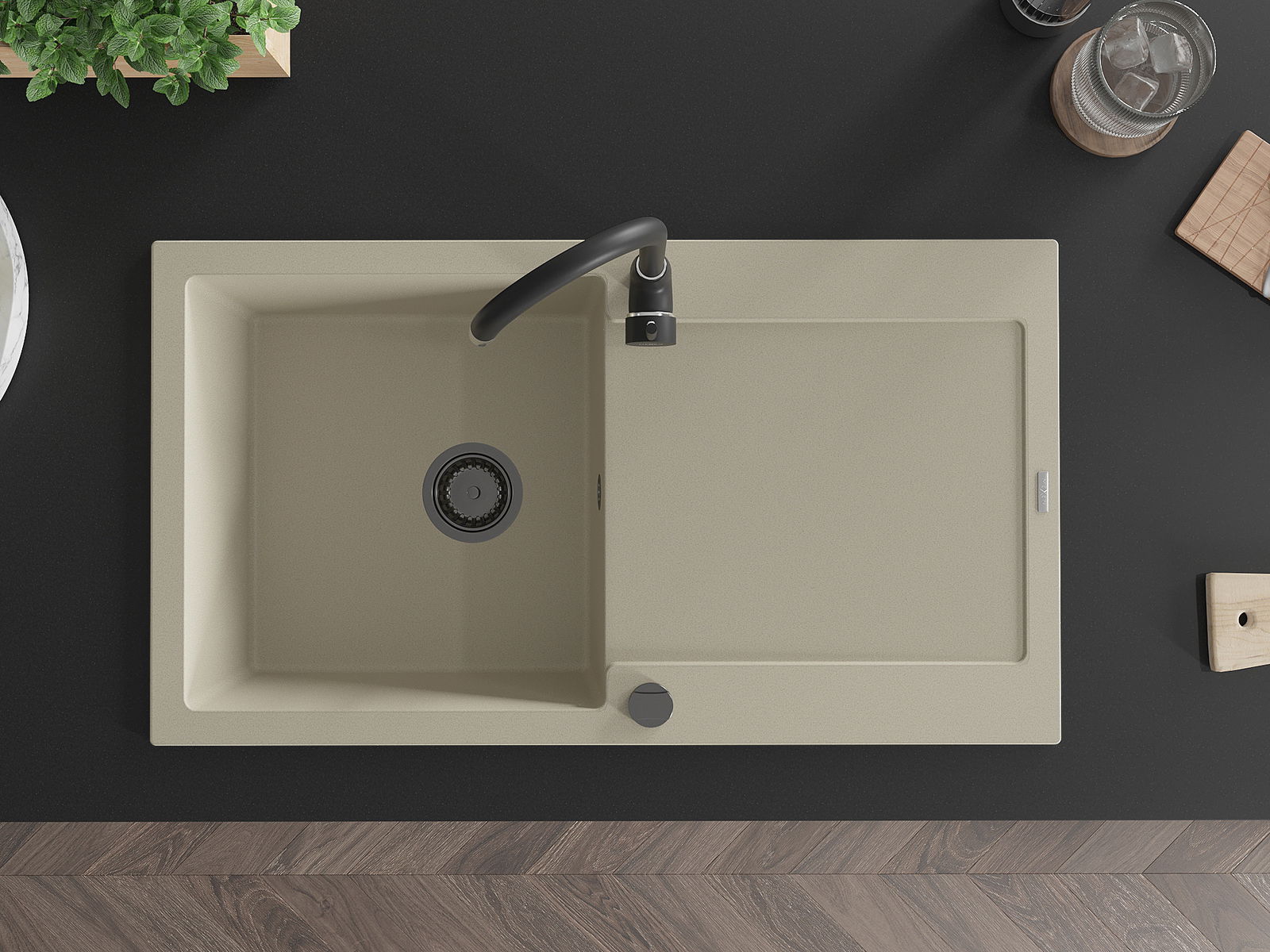 Dřez byl vyroben z vysoce kvalitního granitu. Představuje elegantní a především praktický doplněk každé kuchyně, bez ohledu na její styl. Vysoká kvalita a trvanlivost granitu zajišťují dlouholeté používání.
